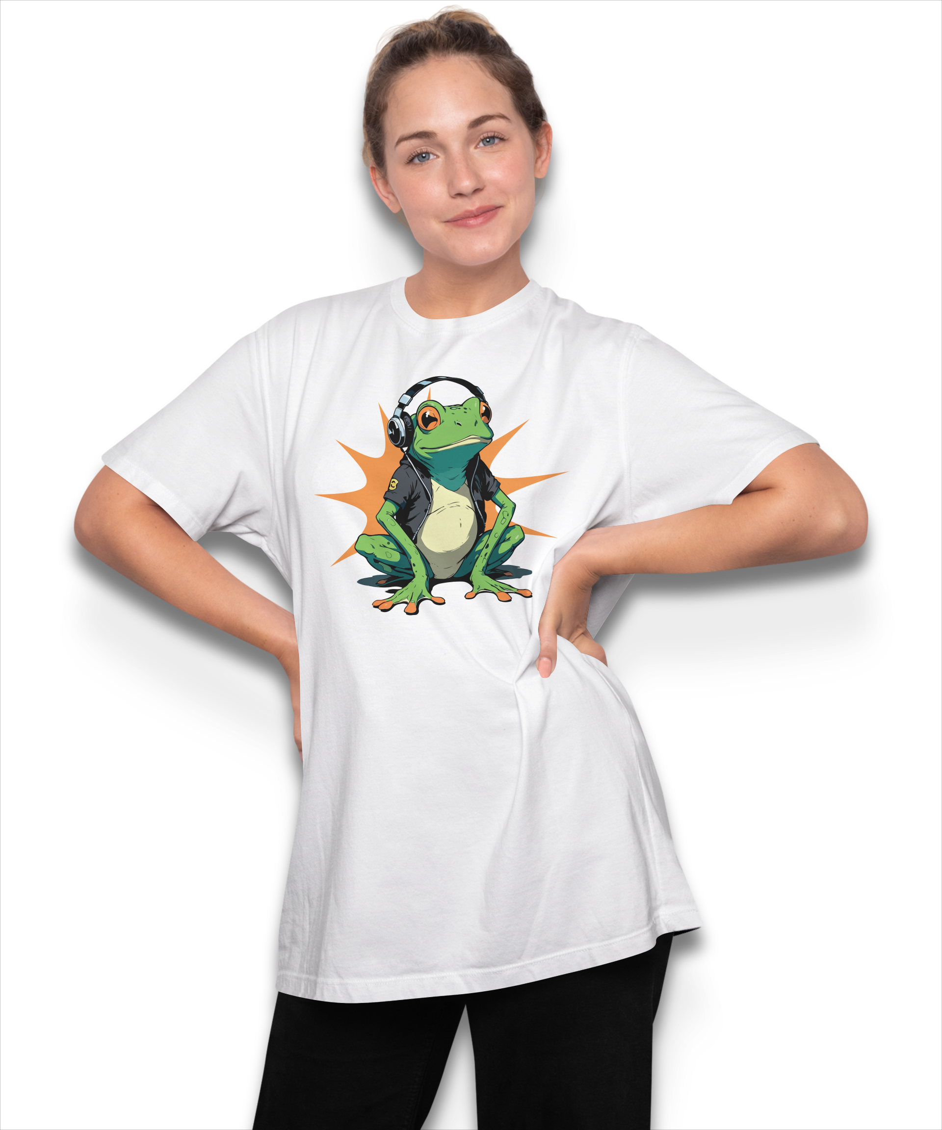 Grüner Frosch Dj Kröte mit Kopfhörer Funk Soul Bluetooth Musik Fun T-Shirt weiß 122 - 3XL Baumwolle
