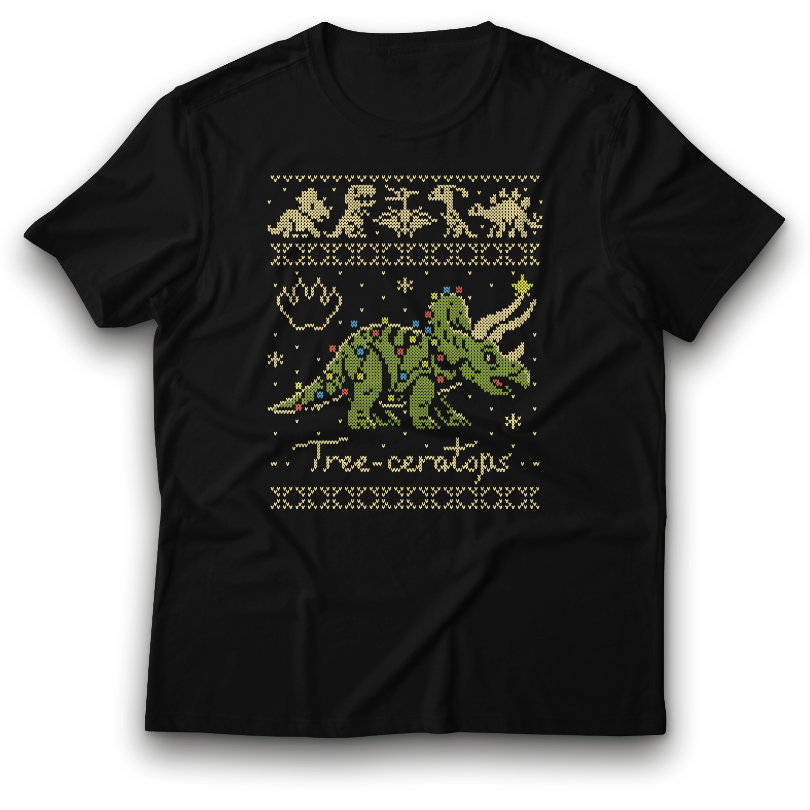 Dinosaurier Triceratops Dino Weihnachten Design T-Shirt schwarz 110 - 3XL Fun Urzeit