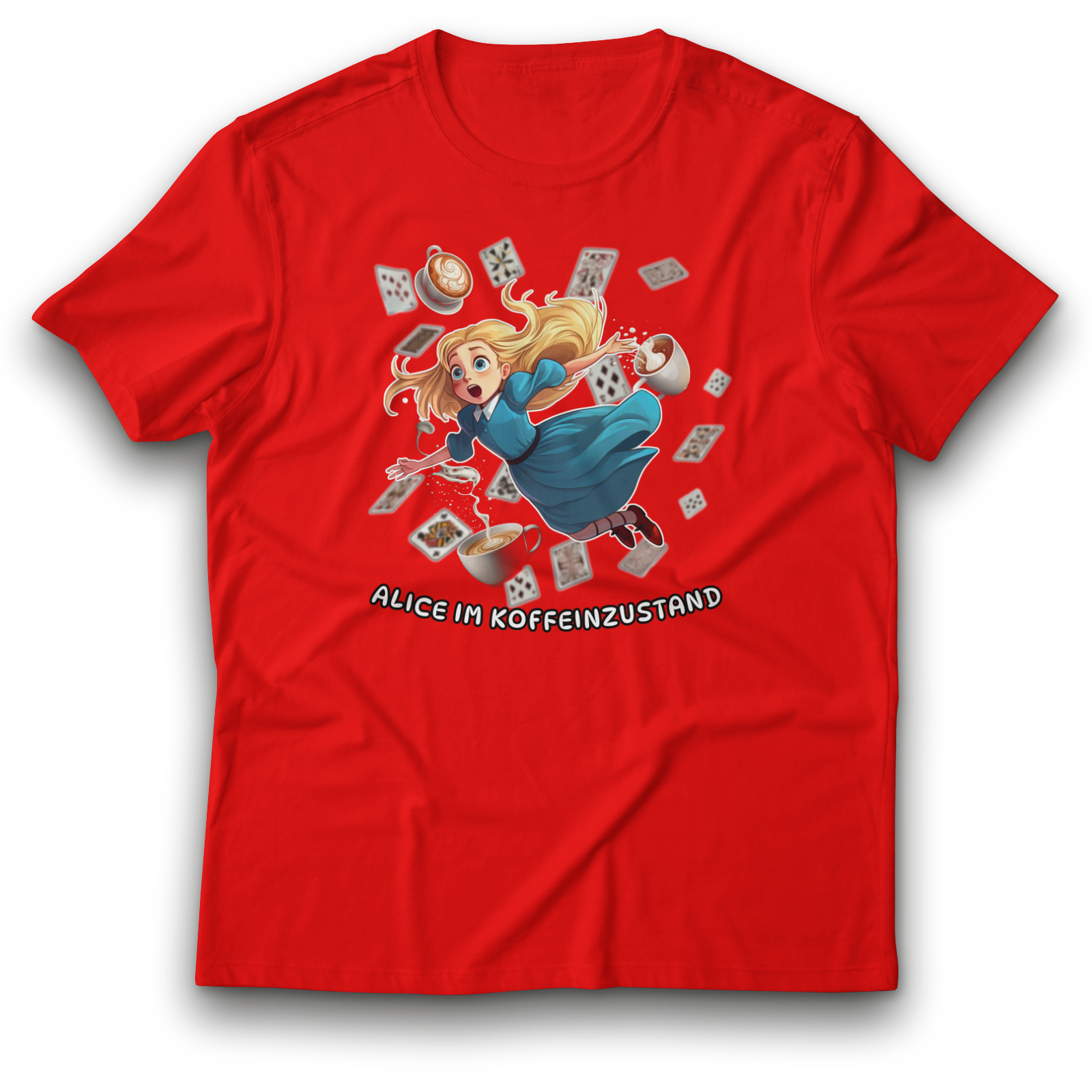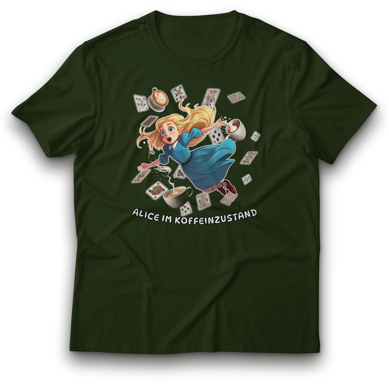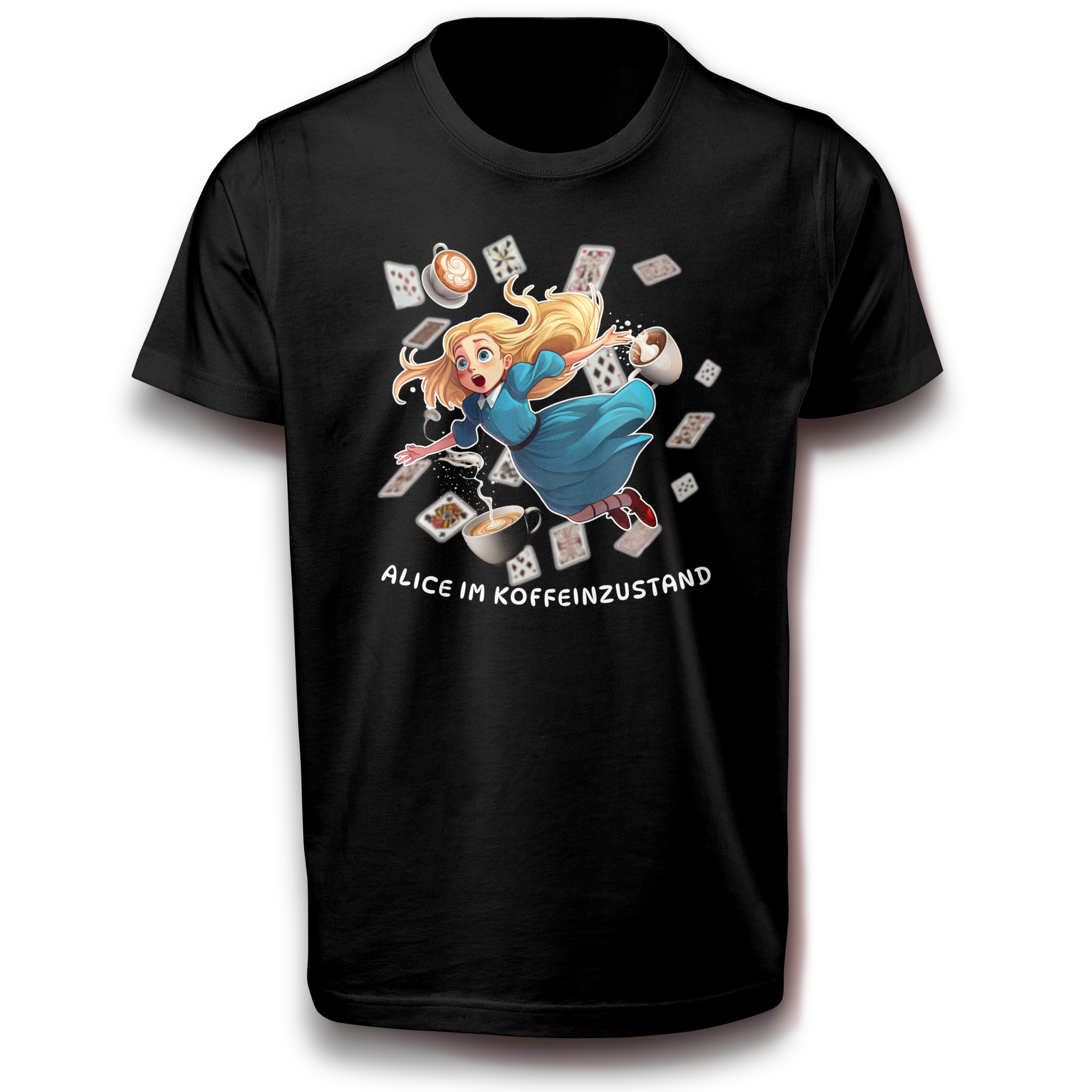 Skurriles Alice im Kaffee Wunderland Getränk Fantasie Märchen Koffein Feier Fun Spaß Lustig T-Shirt 122 - 3XL Baumwolle