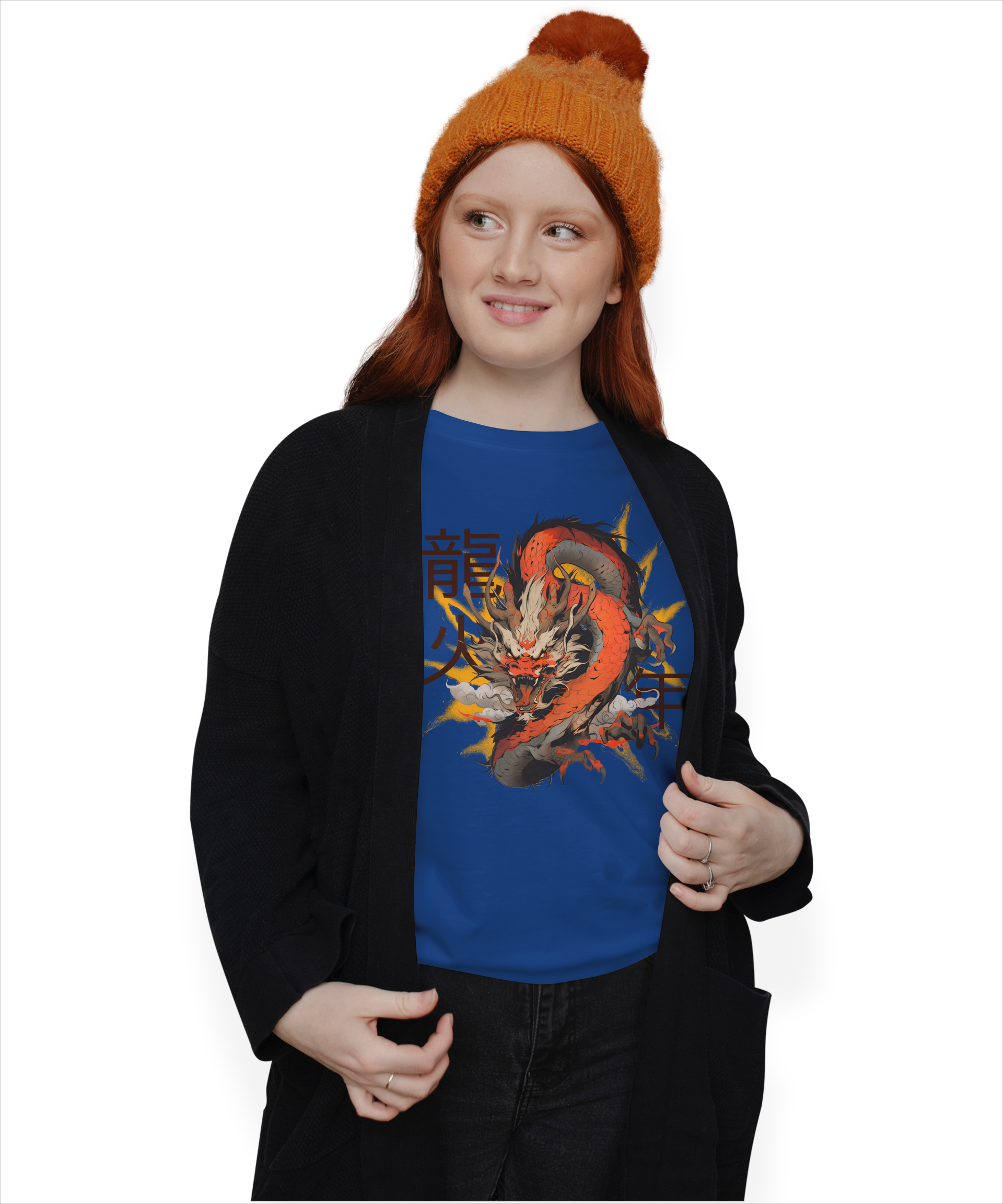 Kraftvolles China Drache Tradition Kultur Fabelwesen Reptil Echse Dragon Mythologie T-Shirt 122 - 3XL Baumwolle