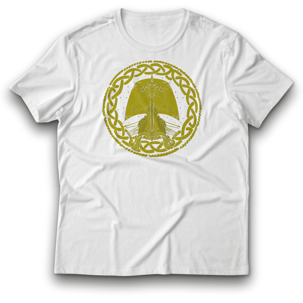 Wikinger Langschiff Odin Boot Walhalla Gold Symbol T-Shirt weiß 122 - 3XL Baumwolle Mythologie Keltisch Nordisch