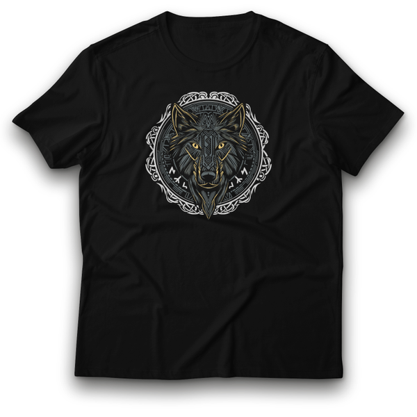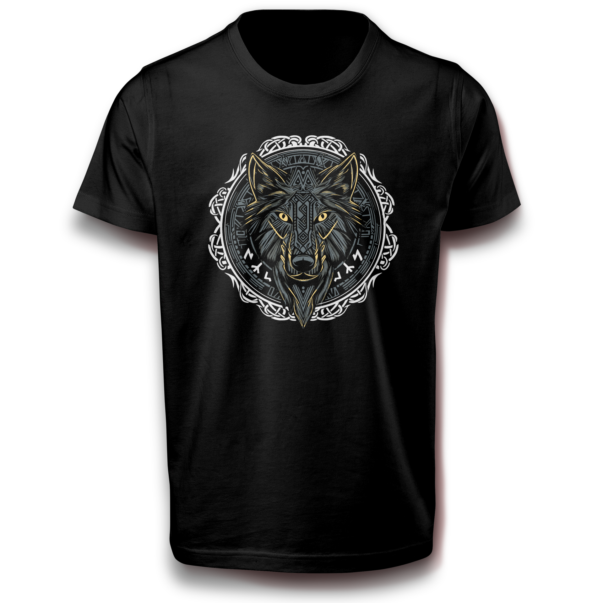 Wikinger Symbol Wolf mit Runen Raubtier Krieger Valhalla Tribal Odin T-Shirt schwarz 110 - 3XL Baumwolle