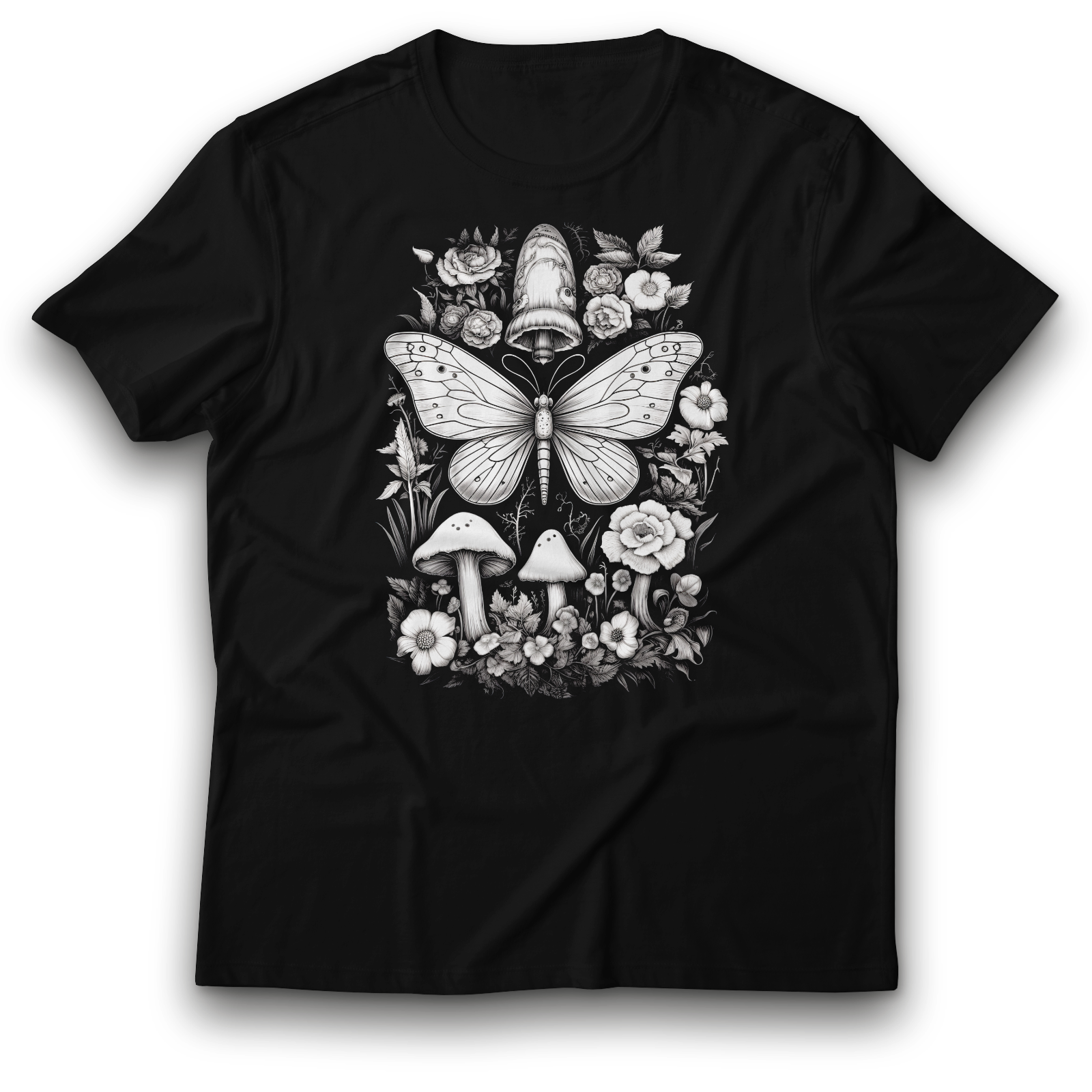 Schmetterling mit Blumen Motte Blätter Design Natur Blume T-Shirt 122 - 3XL Baumwolle