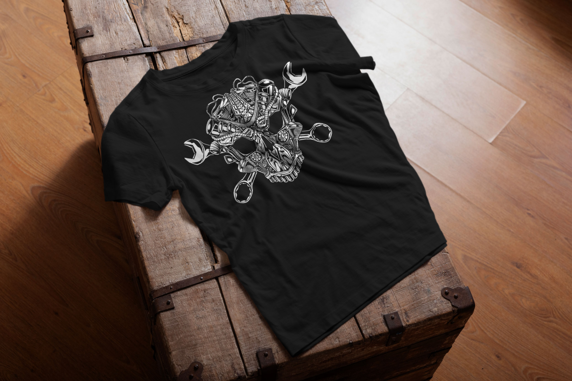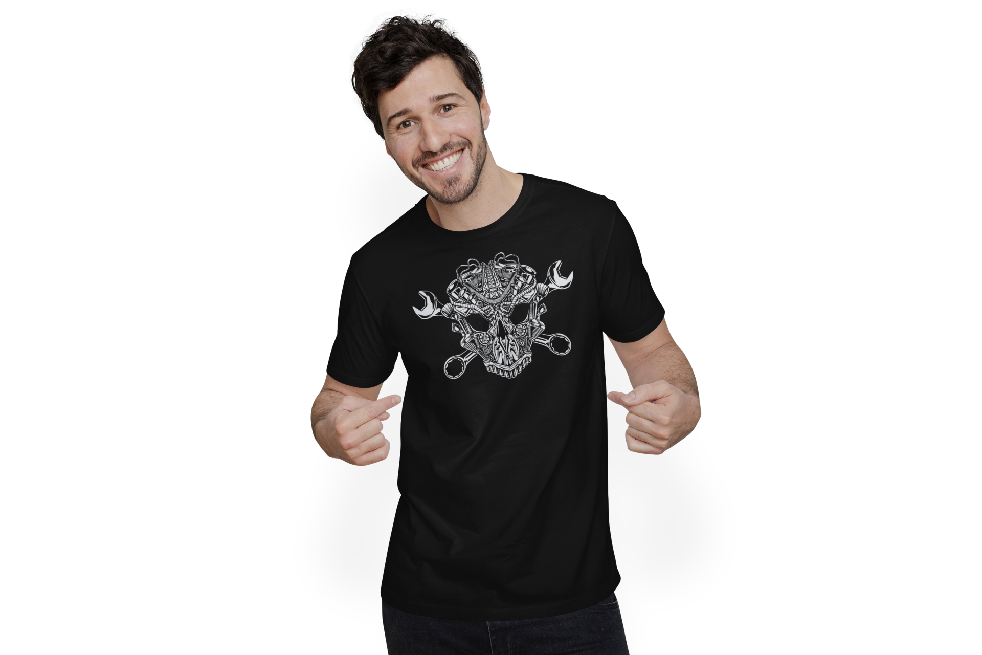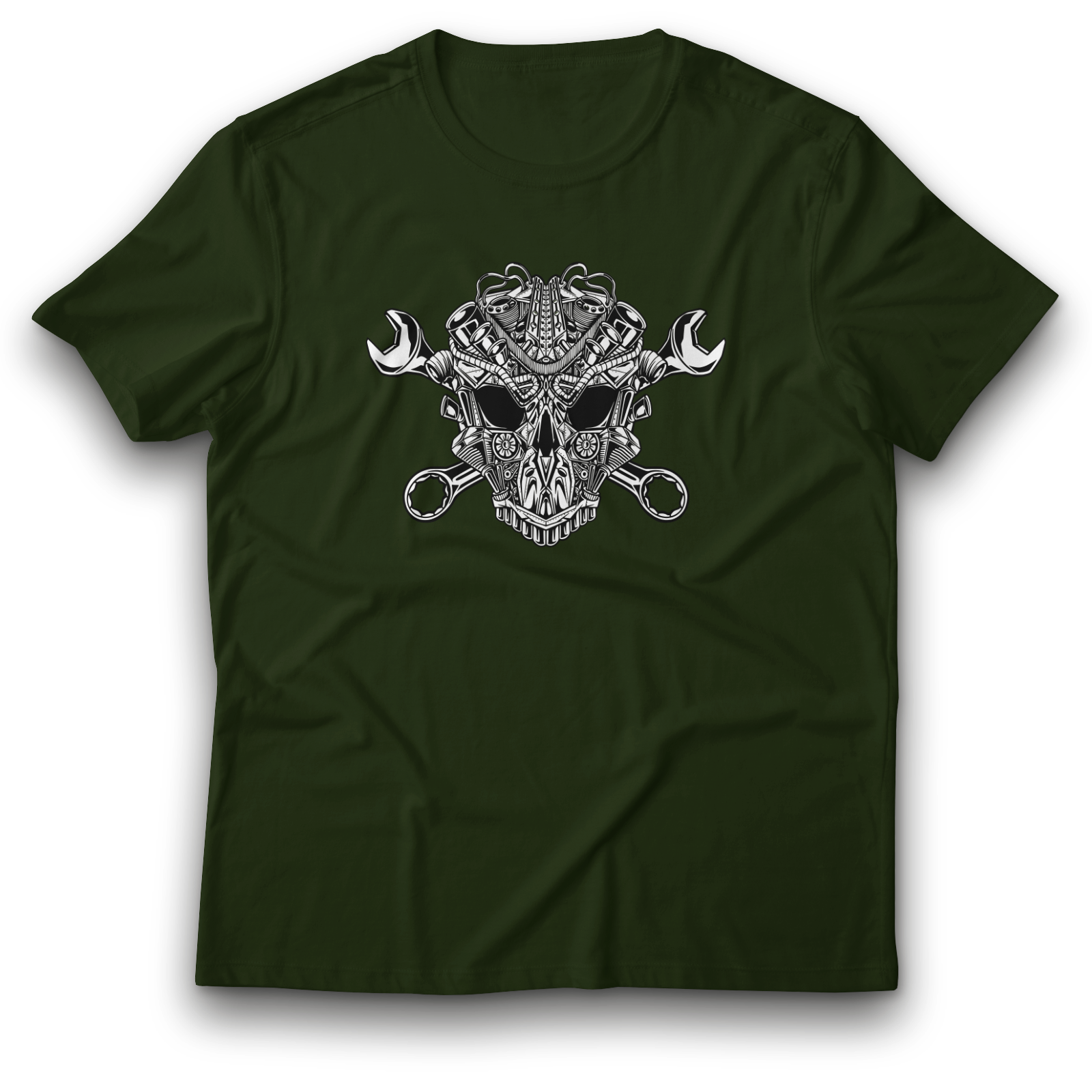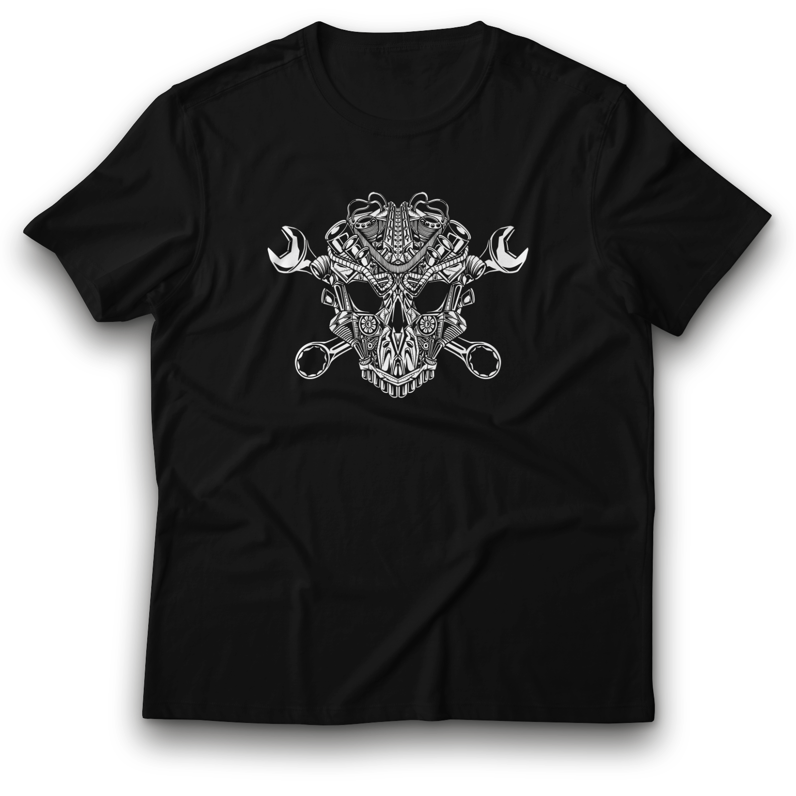 Skull Totenkopf Arbeit Werkzeug Mechaniker Schädel Motor Getriebe Handwerker Schlosser T-Shirt 134 - 3XL Baumwolle