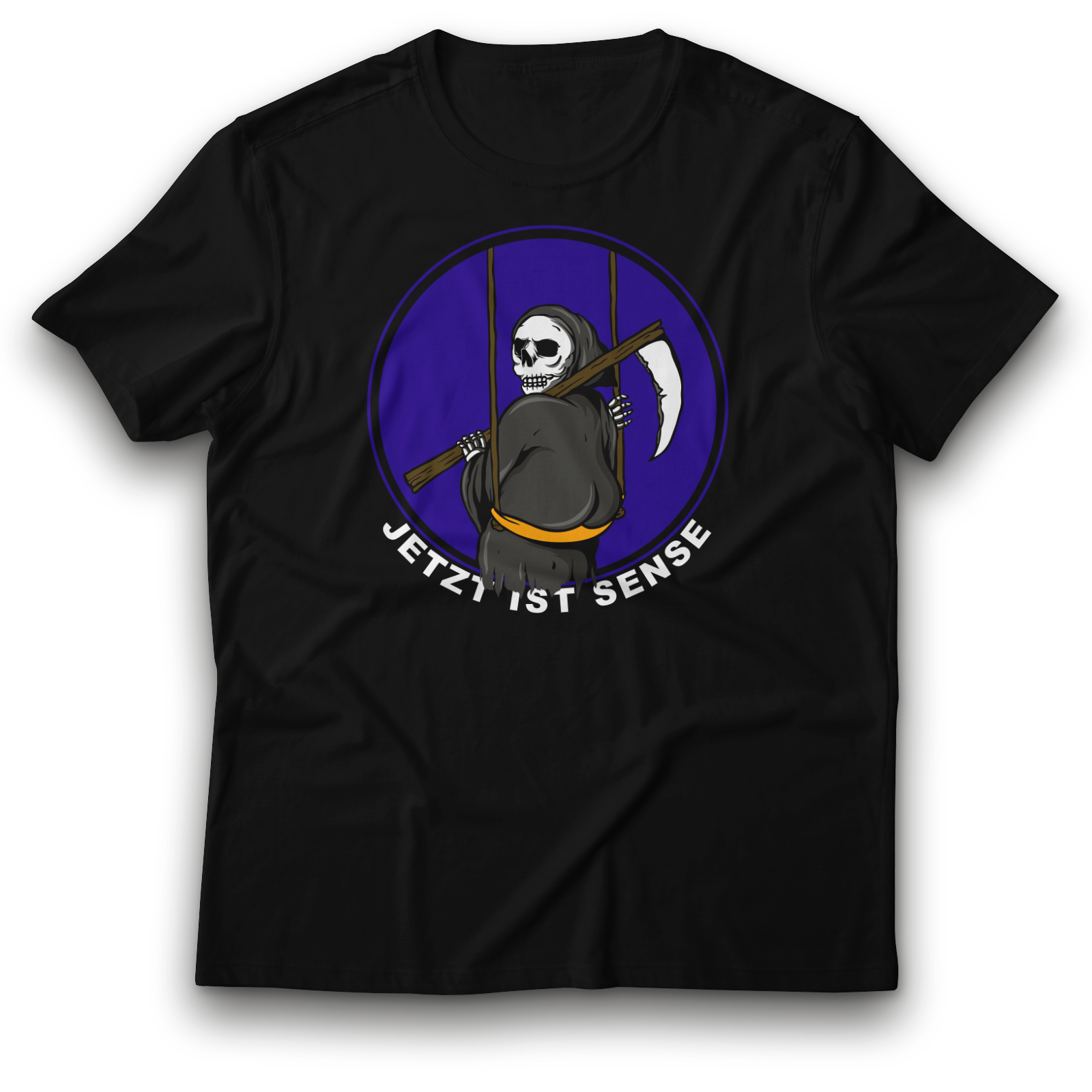 Sensenmann Jetzt ist Sense Tod Zitat Ende T-Shirt 152 - 3XL Baumwolle Spruch Spaß Skelett