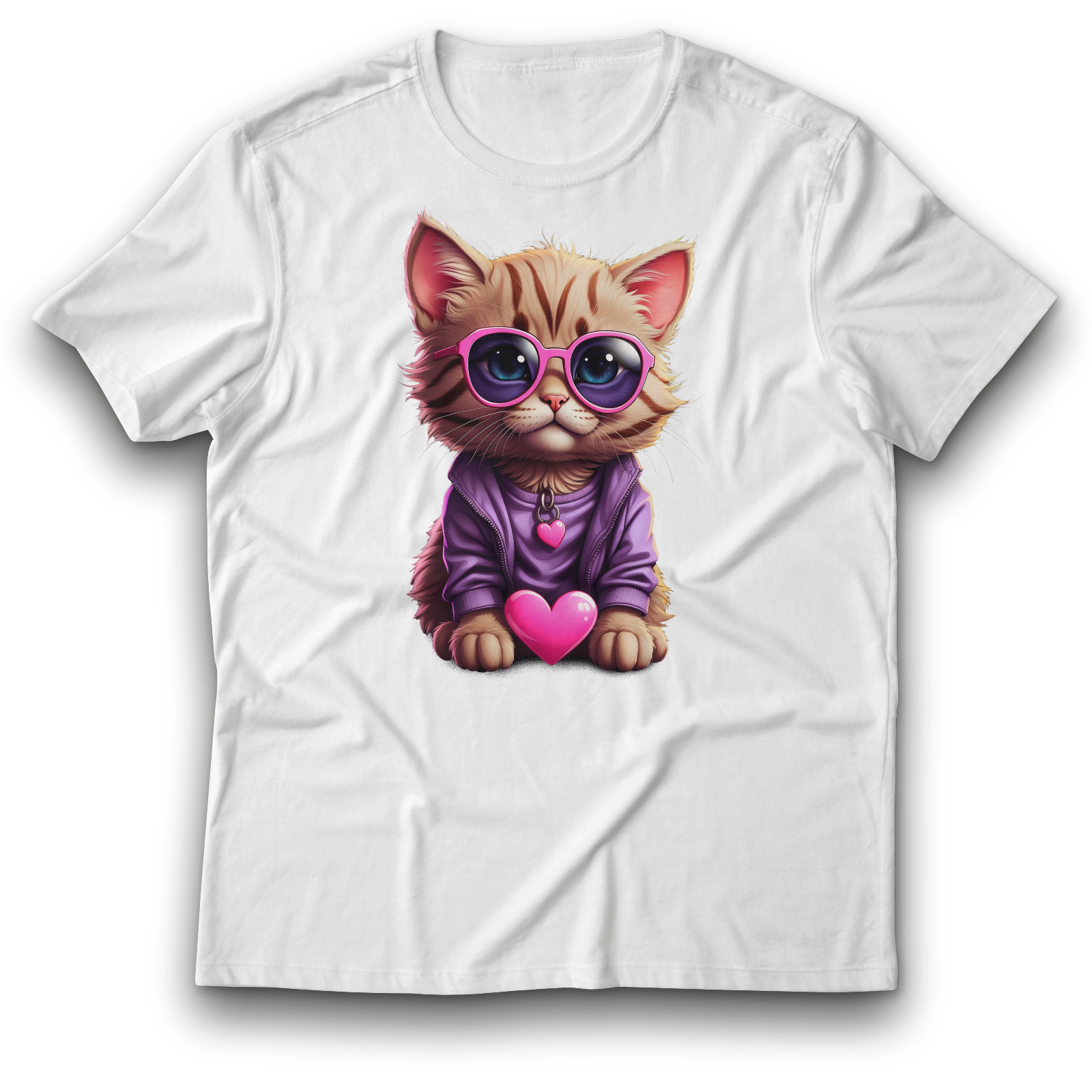 Mode Kätzchen Stilvoll Chic Katze mit Sonnenbrille Cat Kater Süß Fun Haustier Hauskatze T-Shirt weiß 122 - 3XL Baumwolle Tier Spaß Lustig