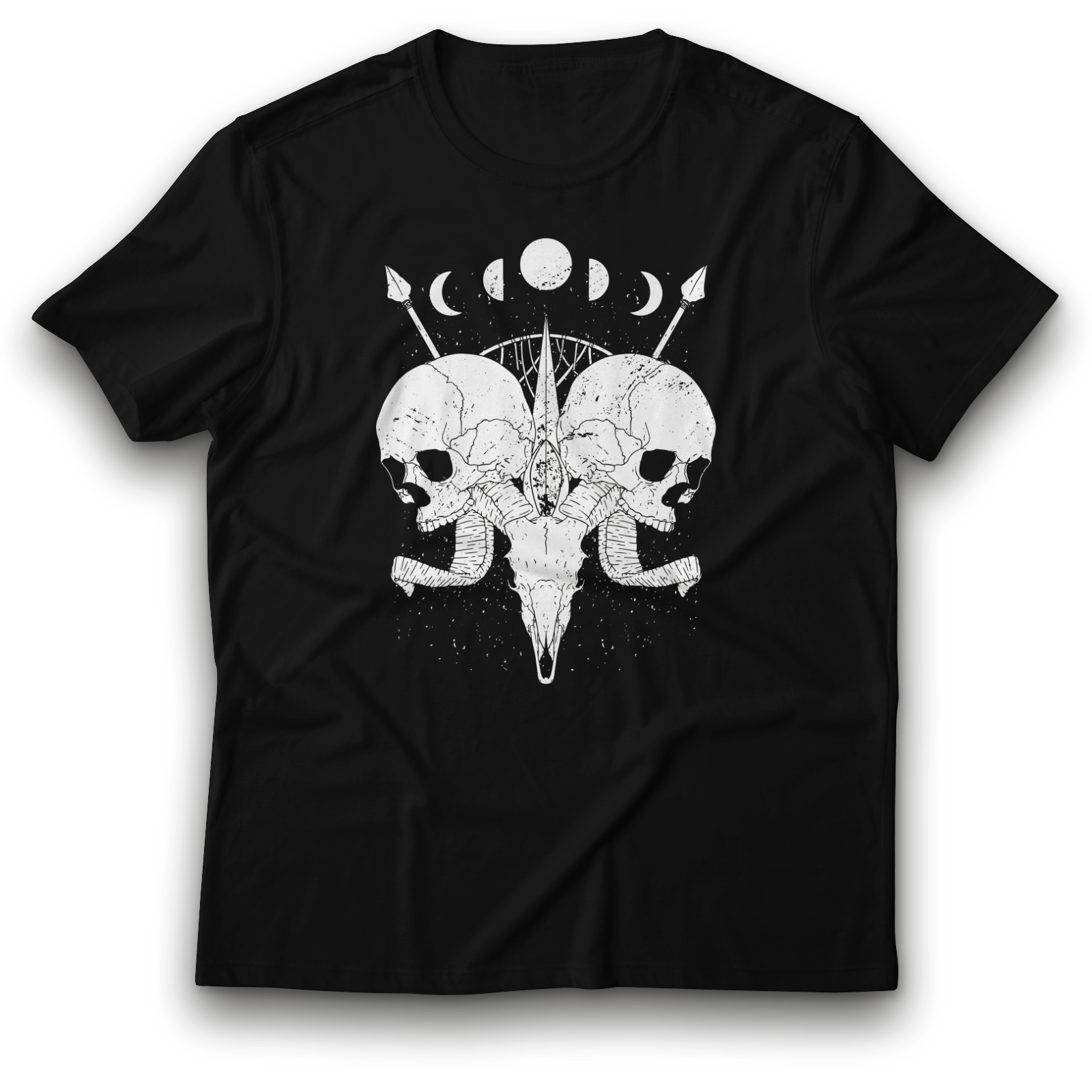 Schädel Skull Kopf Halloween & Baphomet Dämon Ziegenkopf Esoterik T-Shirt 152 - 3XL Baumwolle