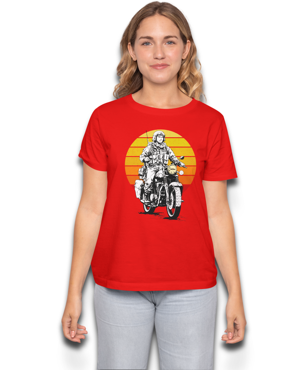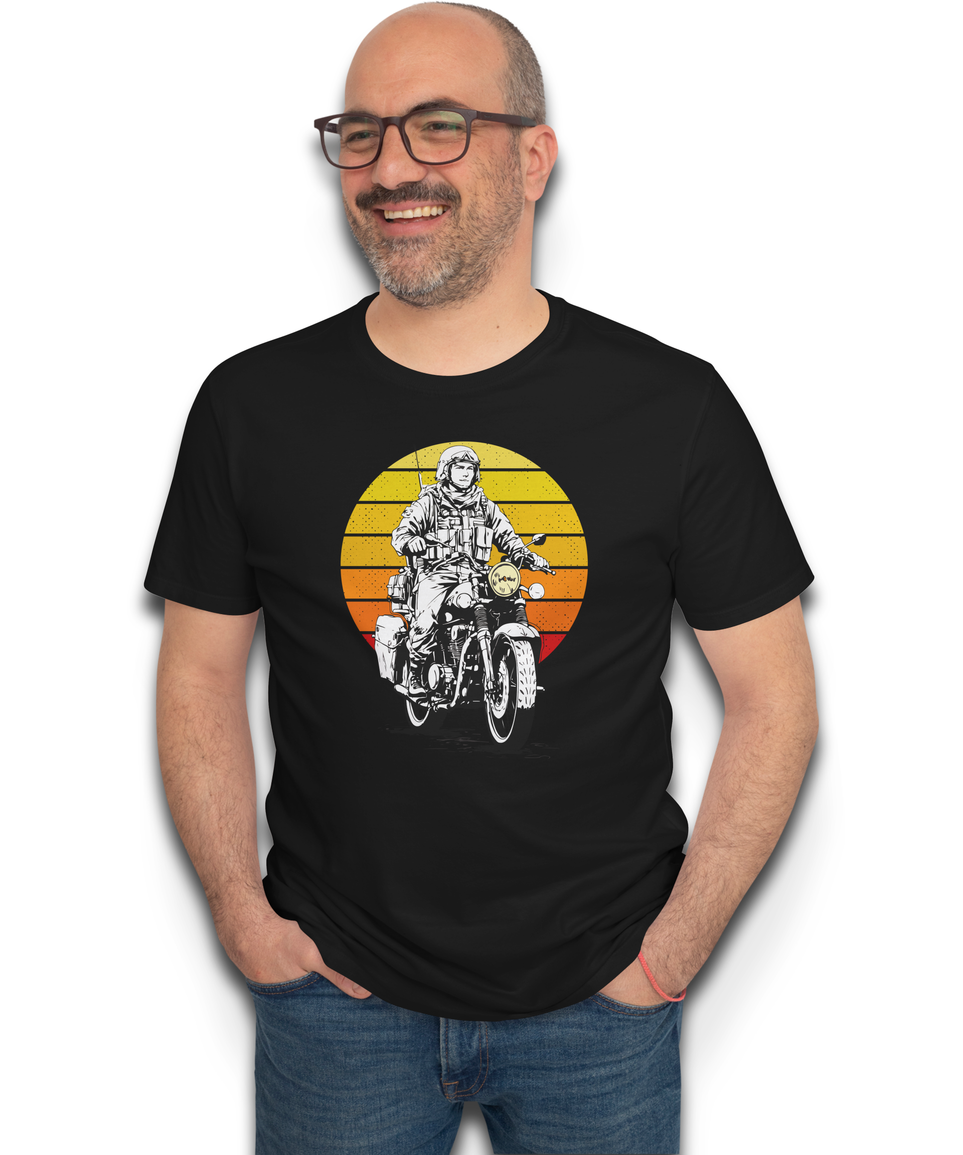 Militär Armee Soldat auf Motorrad im Sonnenuntergang Heer Streitkräfte T-Shirt 122 - 3XL Baumwolle