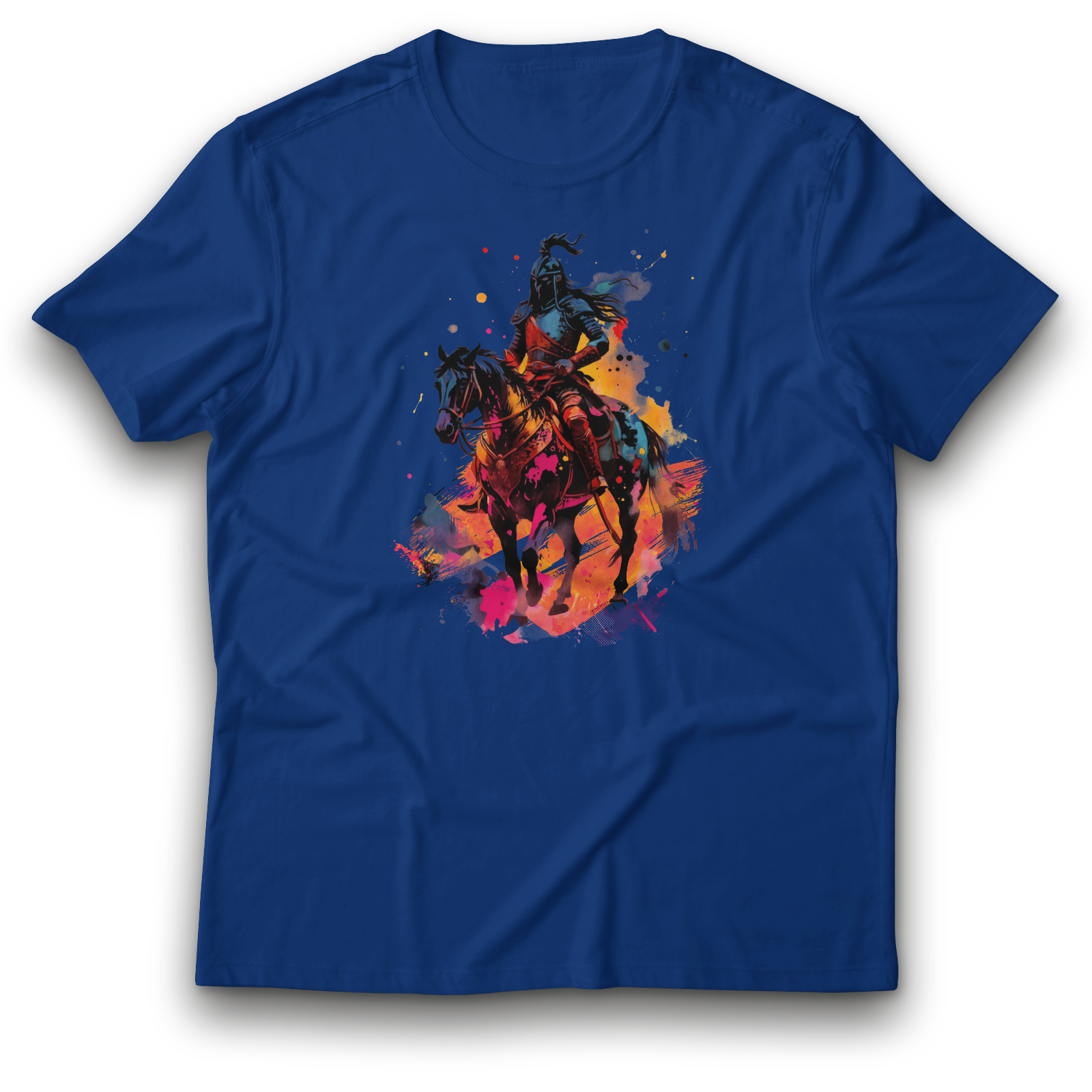 Panzerreiter Krieger Ritter Aquarell Pferd Rüstung T-Shirt 122 - 3XL Baumwolle