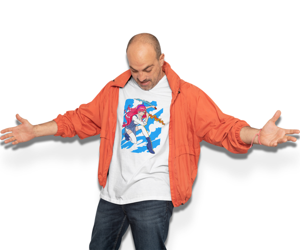 Anime Mädchen Feuer & Wasser Schwert Japan Streitkräfte T-Shirt weiß 122 - 3XL Baumwolle