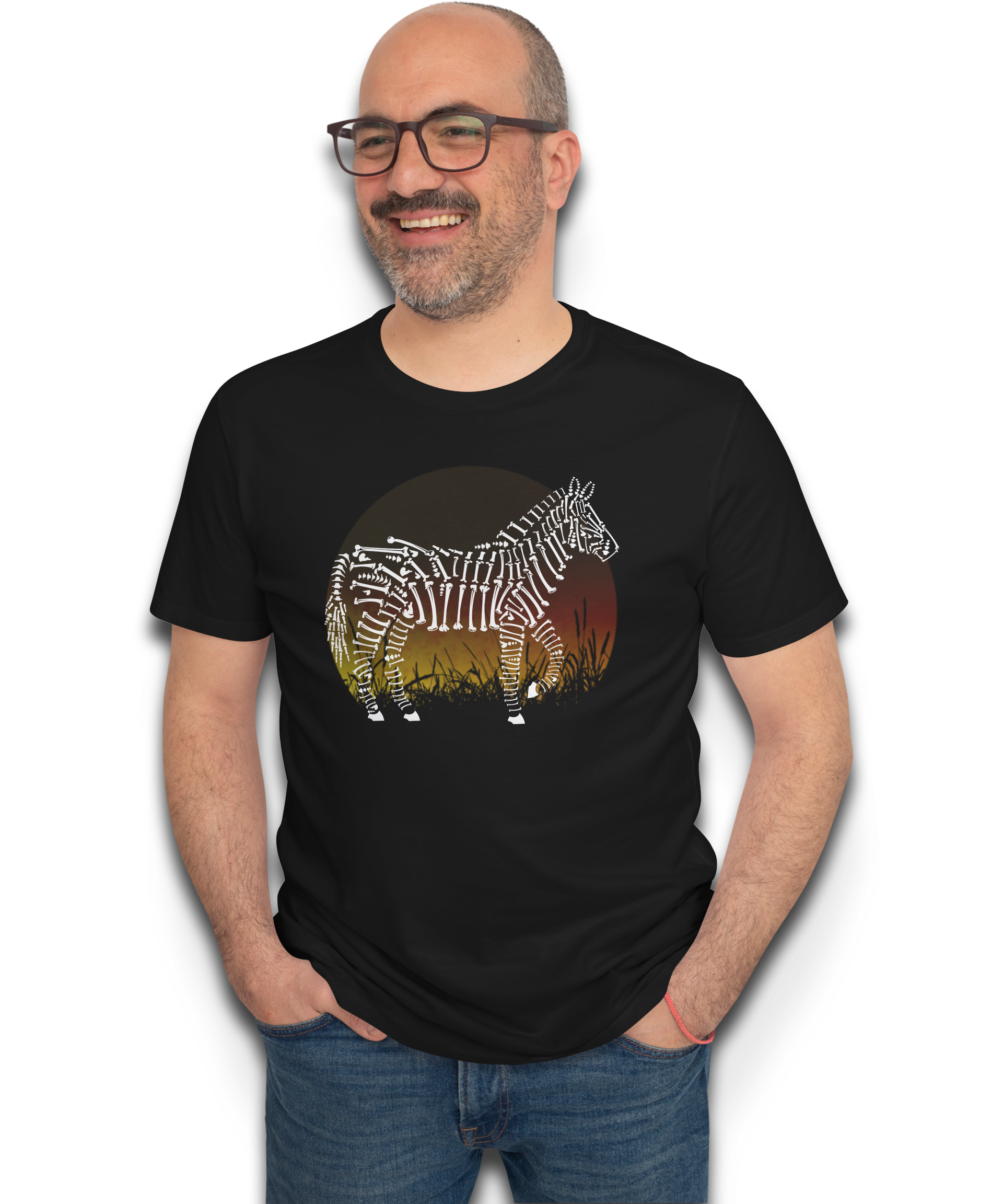 Skelett Zebra Knochen Sonnenuntergang Zombie Pferd Halloween T-Shirt schwarz 134 - 3XL Baumwolle