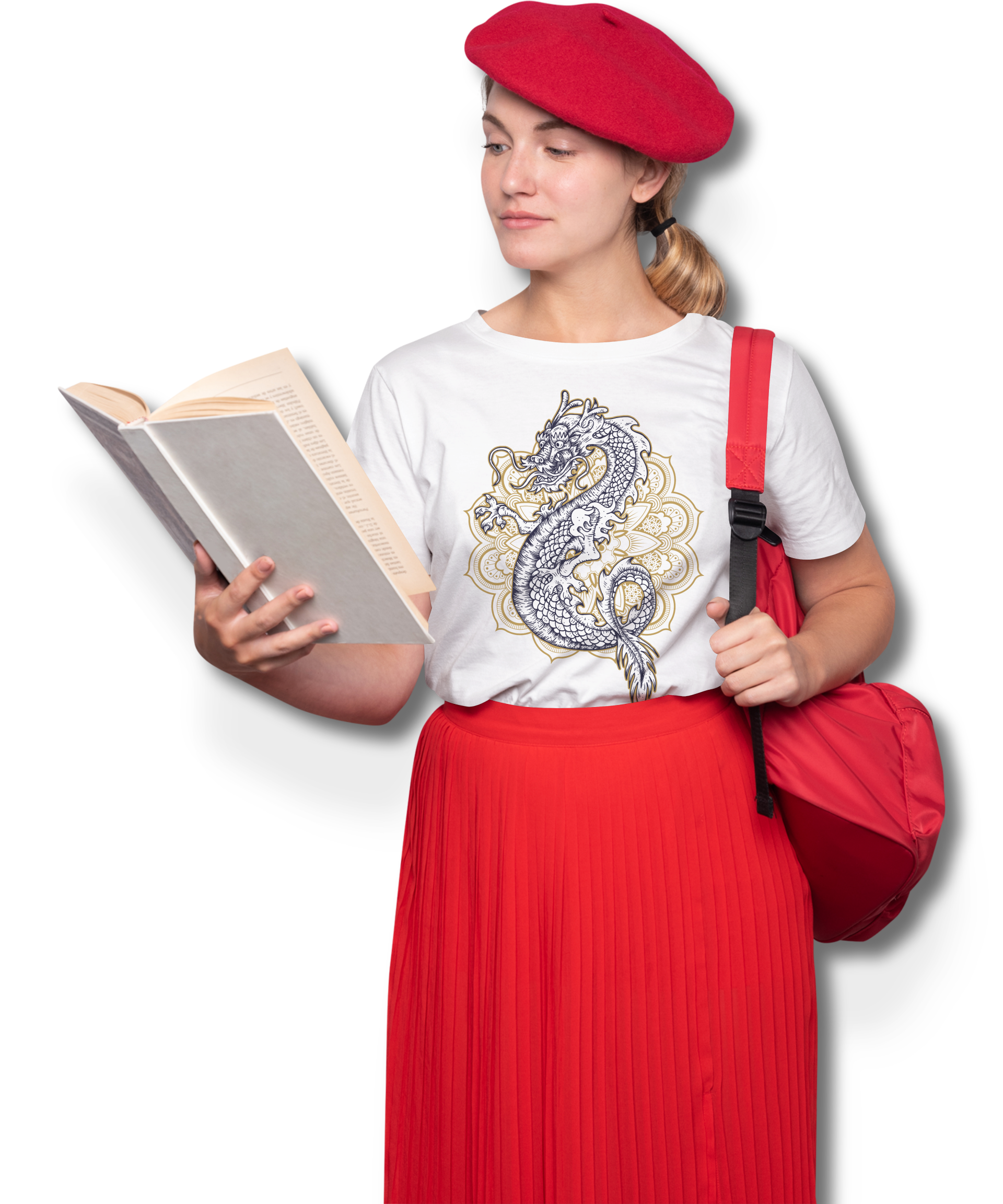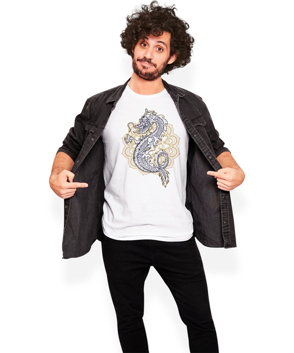 China Mandala Kultur Drache Fabelwesen Mythologie Reptil Echse Dragon T-Shirt weiß 122 - 3XL Baumwolle