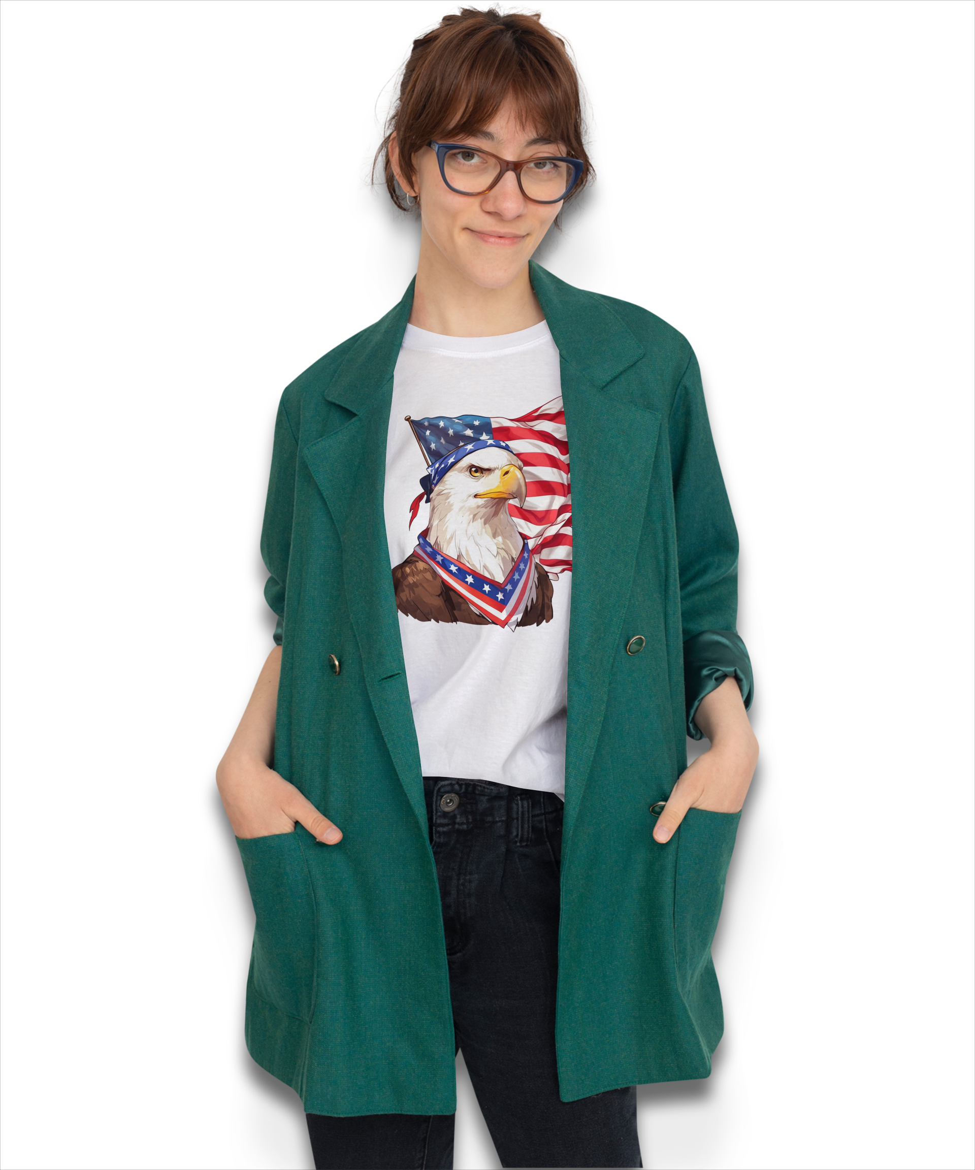 Vogel Porträt Amerika Adler mit USA Flagge Natur Tier Patriotisch T-Shirt weiß 122 - 3XL Baumwolle