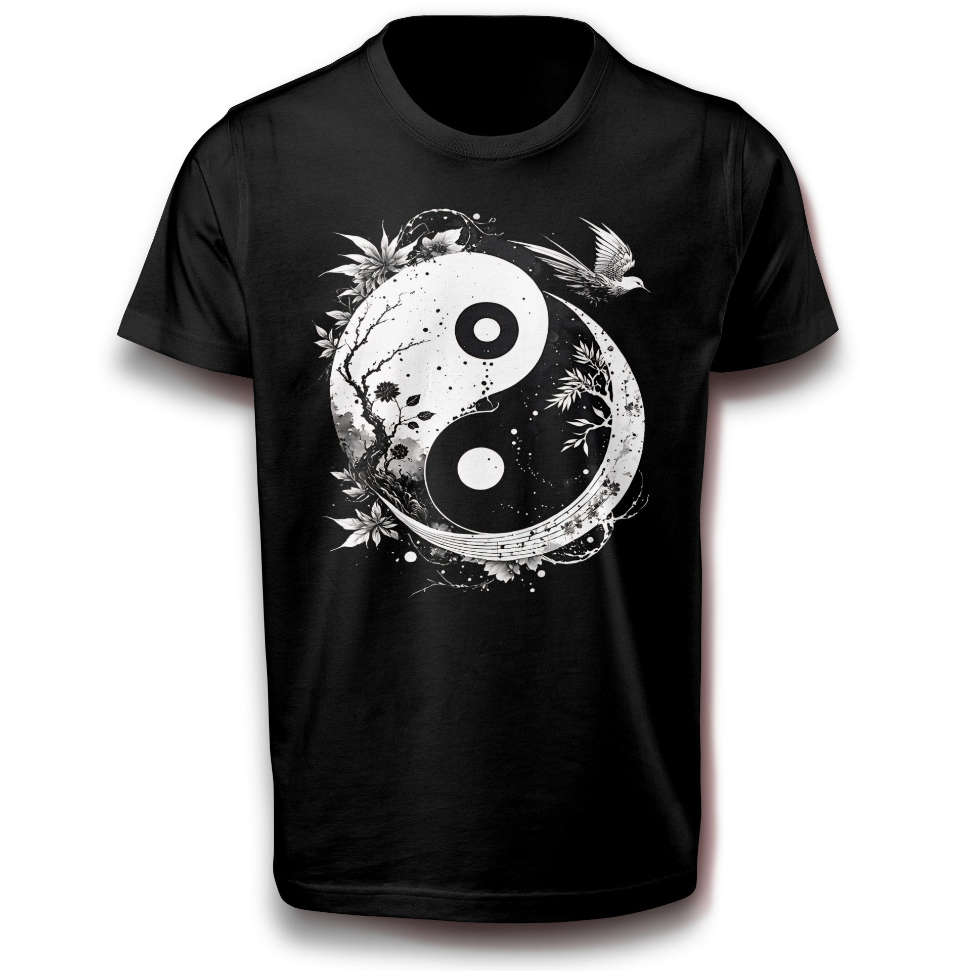Kolibris Vogel im Yin Yang Blumen Universum Daoismus Gleichgewicht Energie T-Shirt schwarz 110 - 3XL Baumwolle
