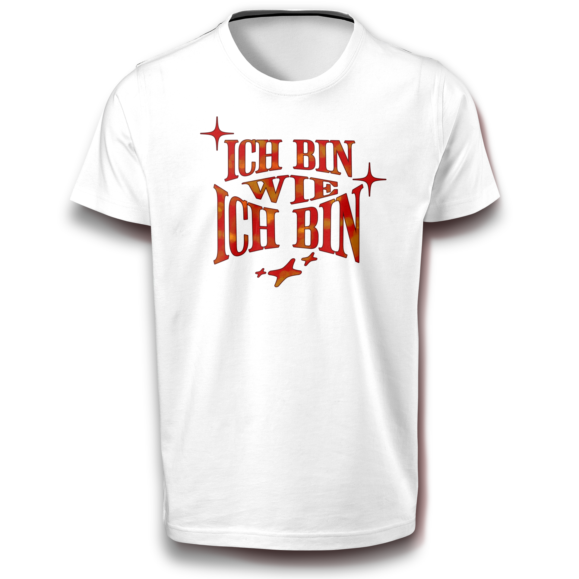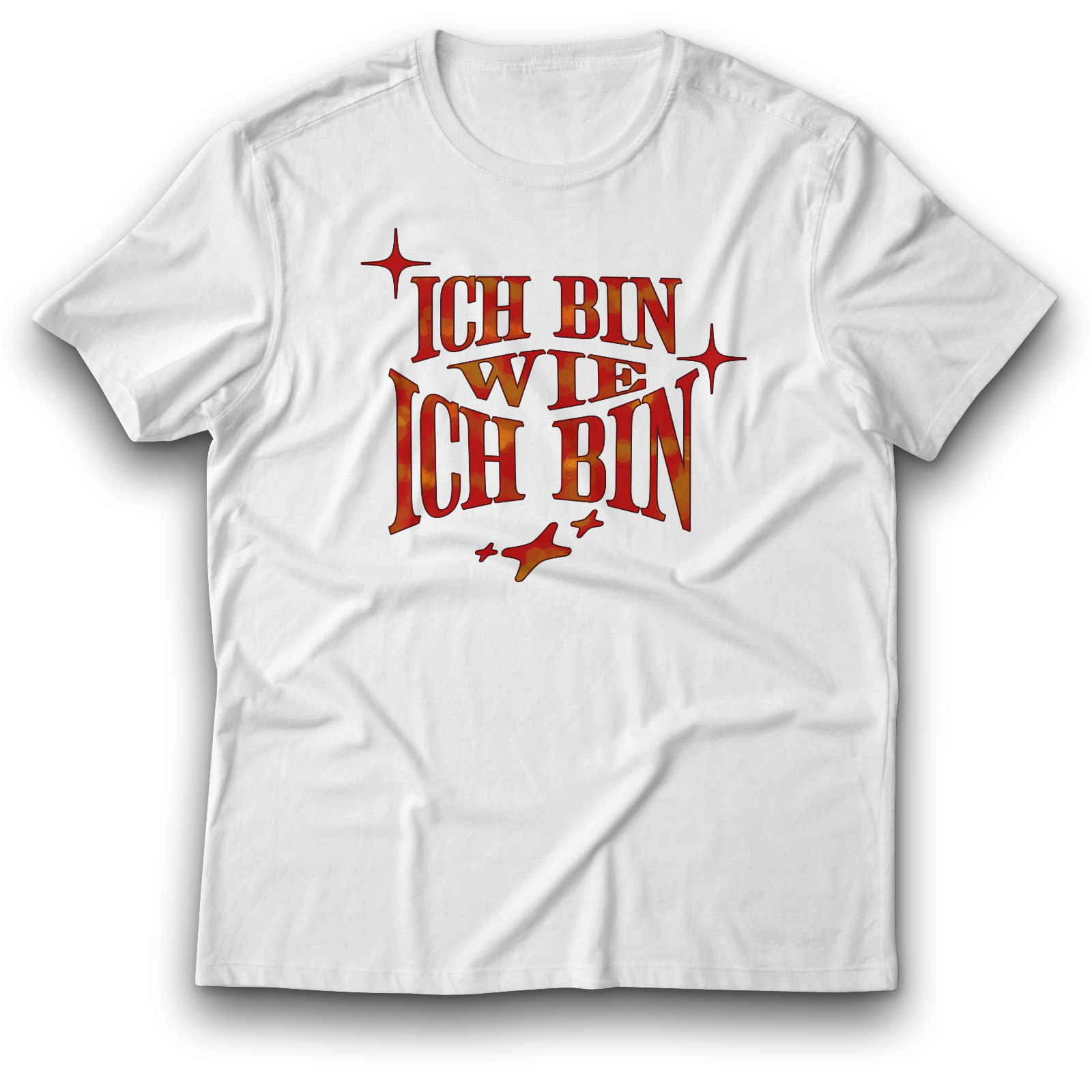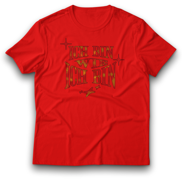 Sei du selbst – in jeder Situation! Dieses coole Statement T-Shirt mit dem Spruch „Ich bin wie ich bin“ setzt ein klares Zeichen für Selbstbewusstsein und Authentizität. Das stylische Design in warmen Rot-Orange-Tönen mit funkelnden Sternen sorgt für einen modernen, positiven Vibe.