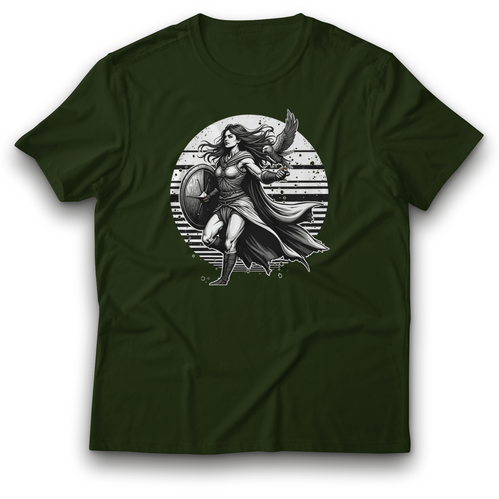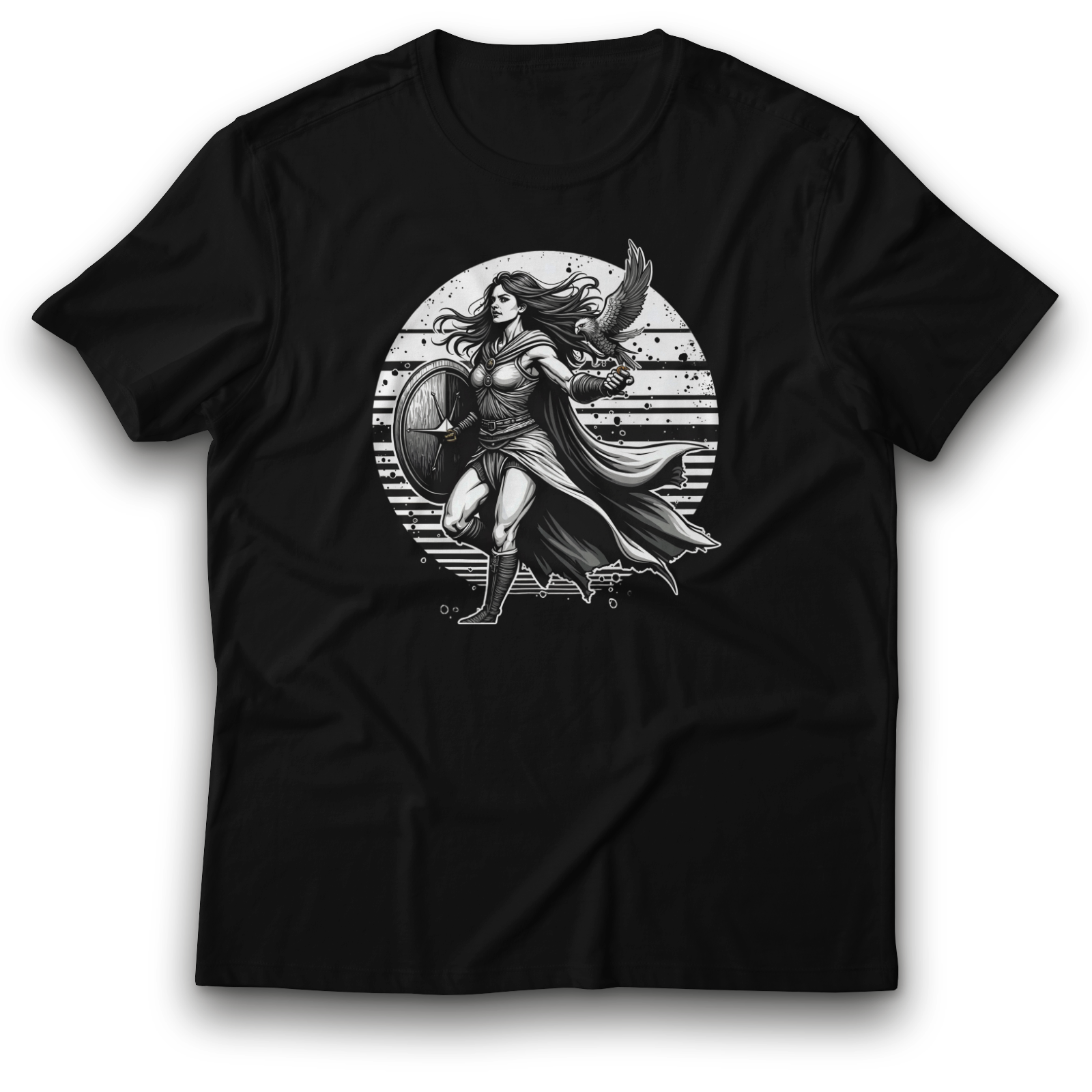 ✅ Detaillierter Druck: Walküre mit Schild & Rabe