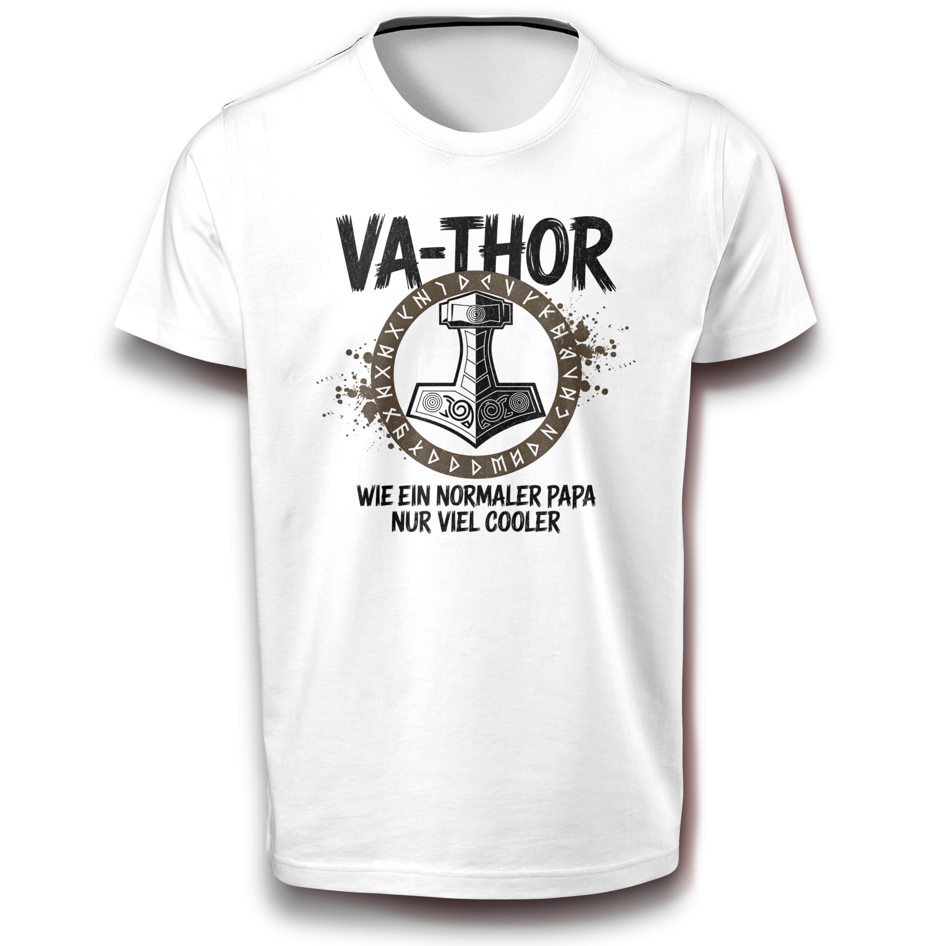 VA-THOR T-Shirt weiß für Papa Wikinger Hammer Motiv Vatertagsgeschenk cool