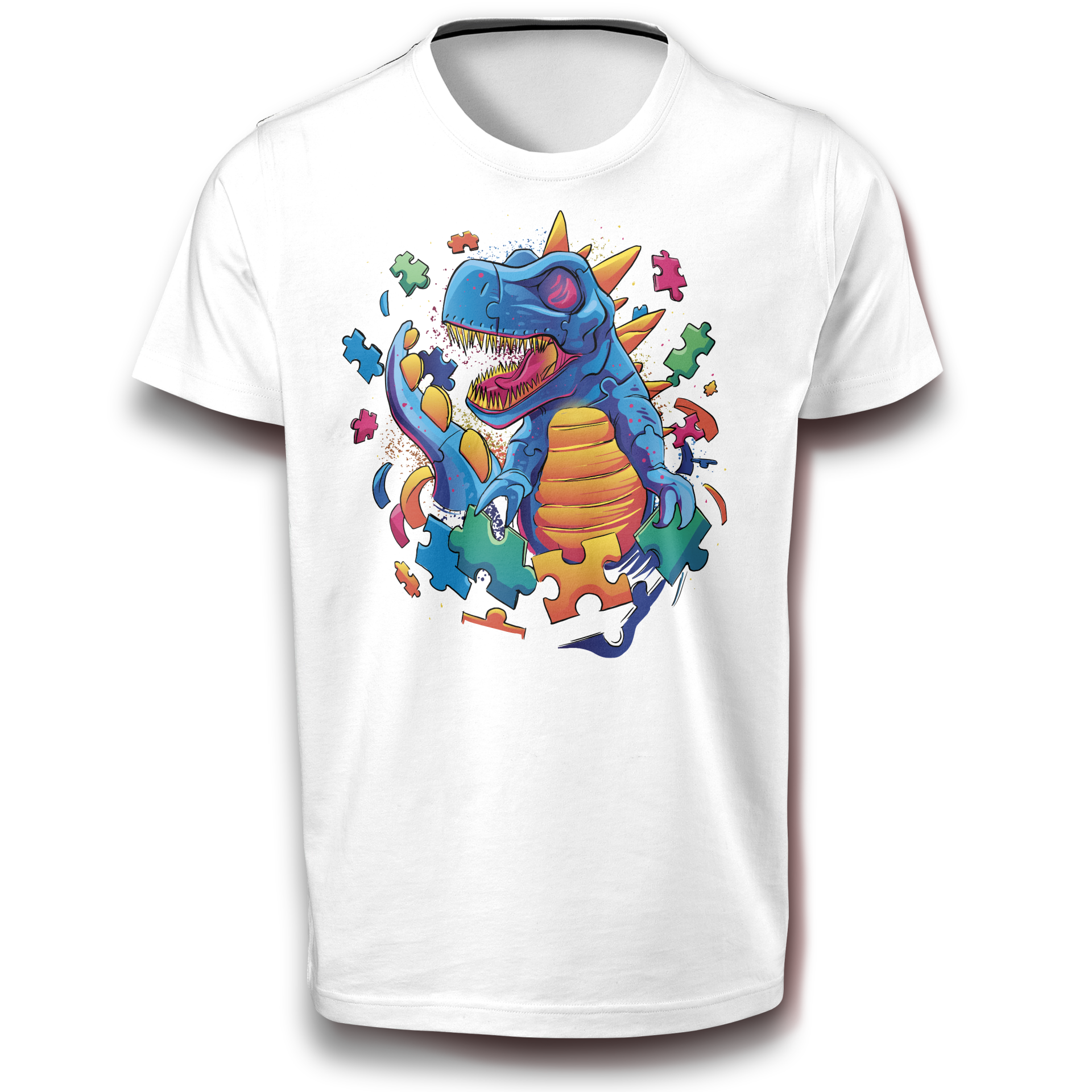 Dieses T-Shirt kombiniert einen knalligen Comic-Dino mit Puzzleteilen – das ultimative Statement für Selbstbewusstsein, Diversität und den Mut, anders zu sein. Perfekt für Fans von Popkultur, Autismus-Awareness oder einfach gute Laune mit Biss.