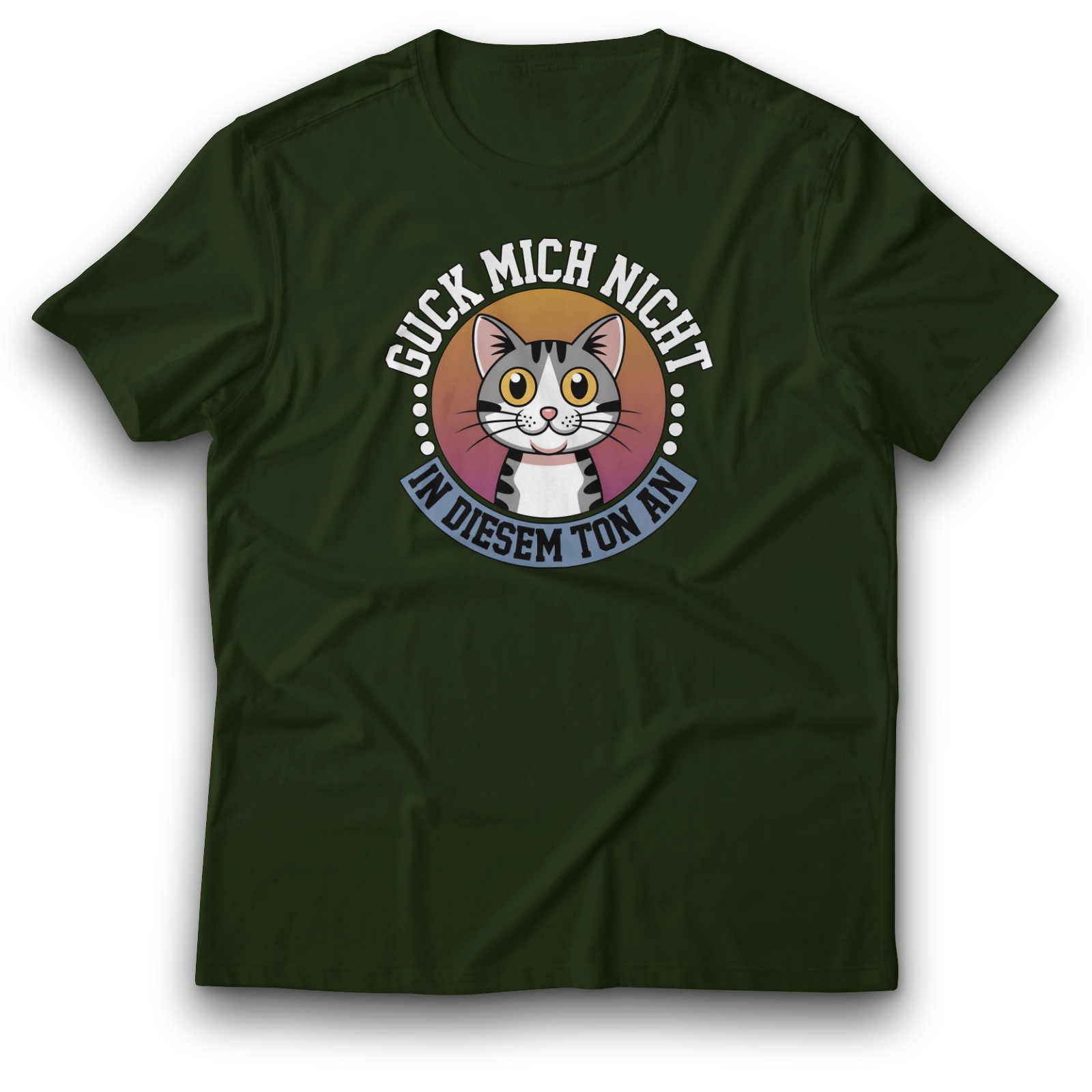Dieses witzige Katzen-T-Shirt ist genau das Richtige für alle, die Sarkasmus, Tiere und coole Sprüche lieben. Der freche Spruch „Guck mich nicht in diesem Ton an“ gepaart mit dem süß-fordernden Blick einer Katze bringt Humor in jeden Alltag - ideal für Tierliebhaber, Katzenfans, Sarkasmusfreunde und Individualisten.