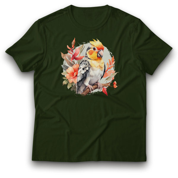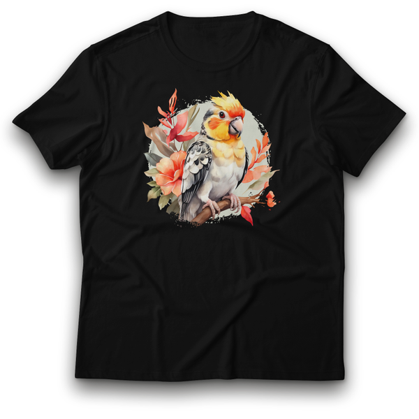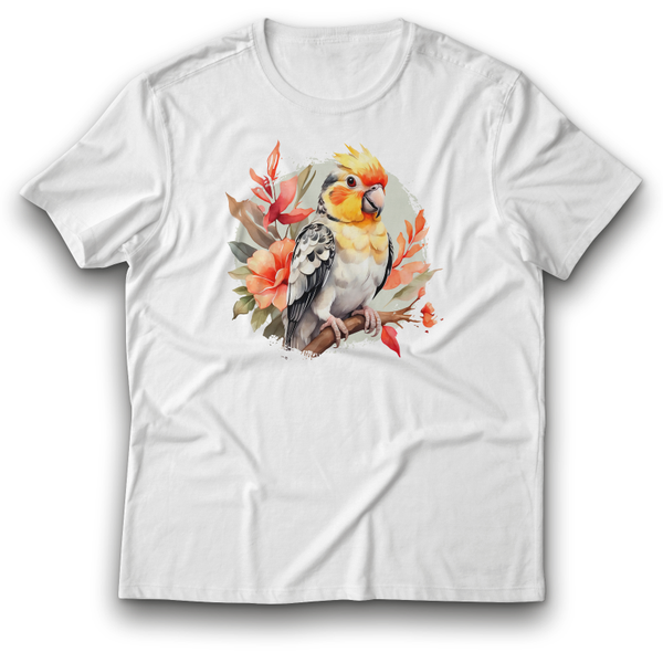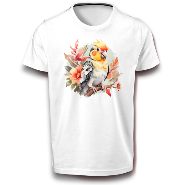 Aquarell Papagei T-Shirt - Tropischer Vogel mit Blumen - Baumwolle