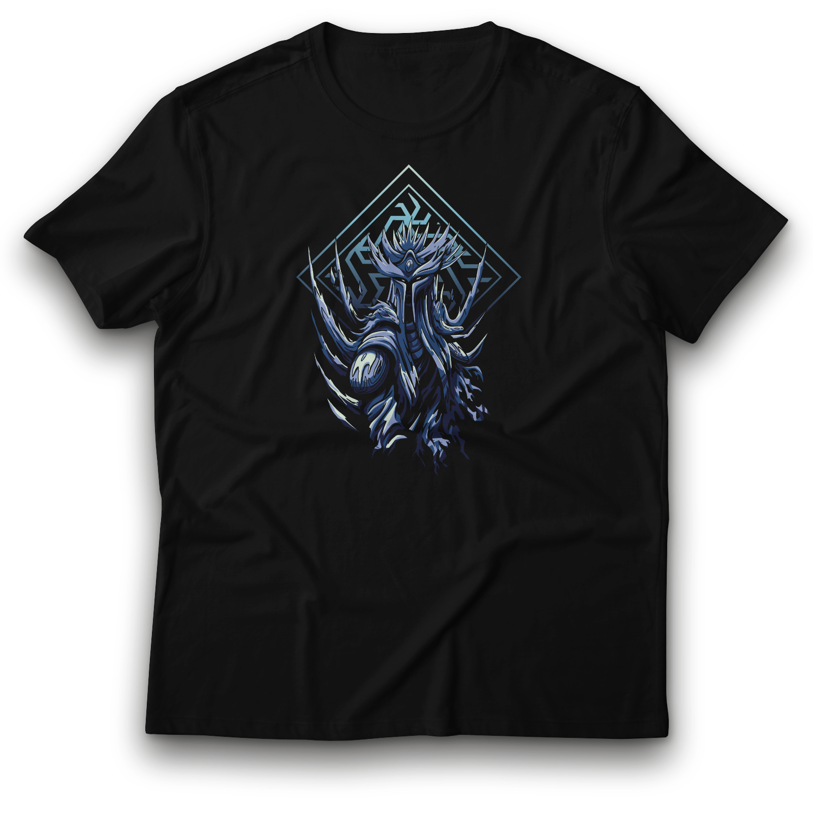 Dieses T-Shirt zeigt einen eisblauen, bedrohlichen Krieger mit speerartigen Formen und runeninspiriertem Hintergrund. Eine Fusion aus nordischer Mythologie, Dark-Fantasy und cooler Urban-Ästhetik. Perfekt für alle, die mit ihrer Kleidung eine Geschichte erzählen.