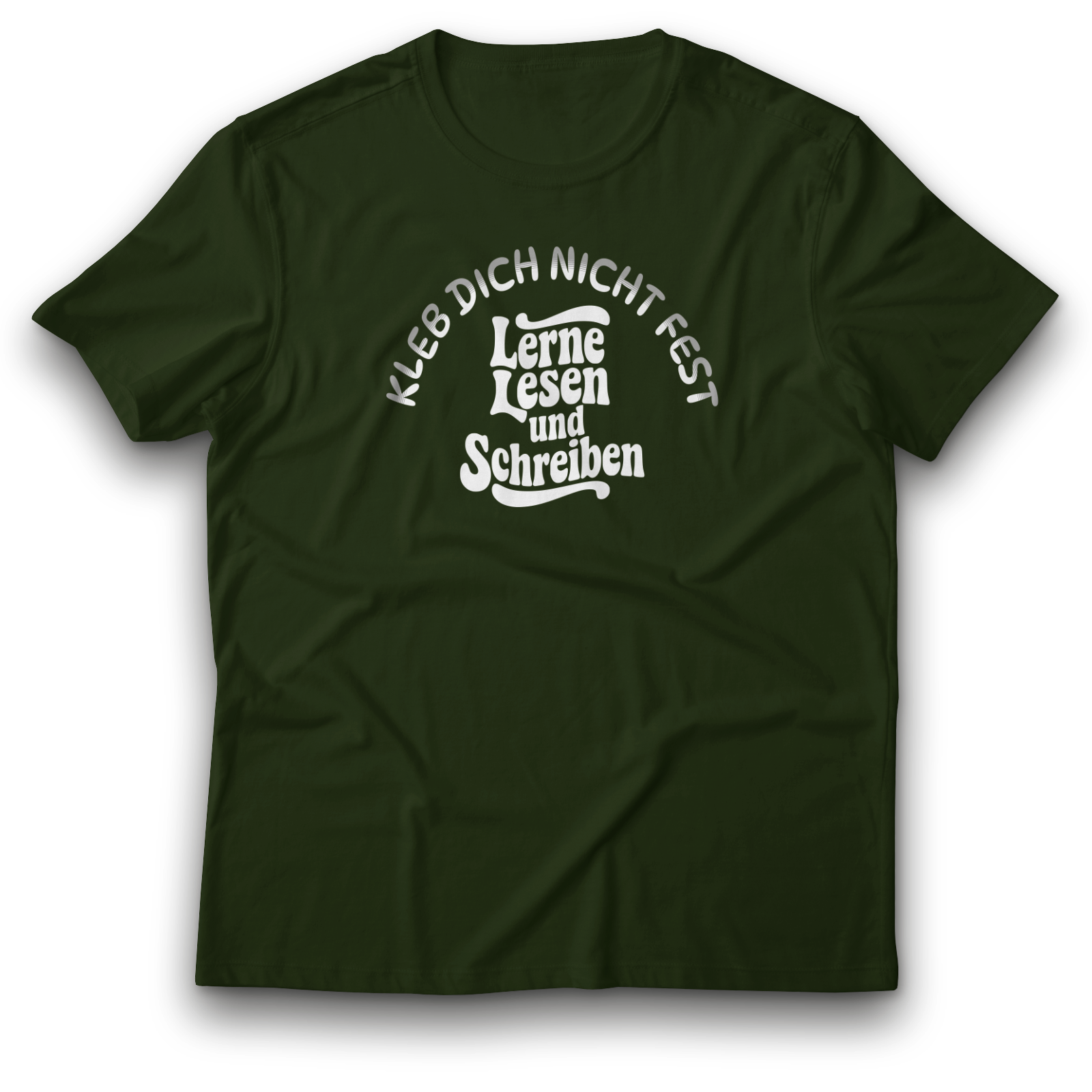 Humorvolles T-Shirt Kleb dich nicht fest Lerne Lesen und Schreiben