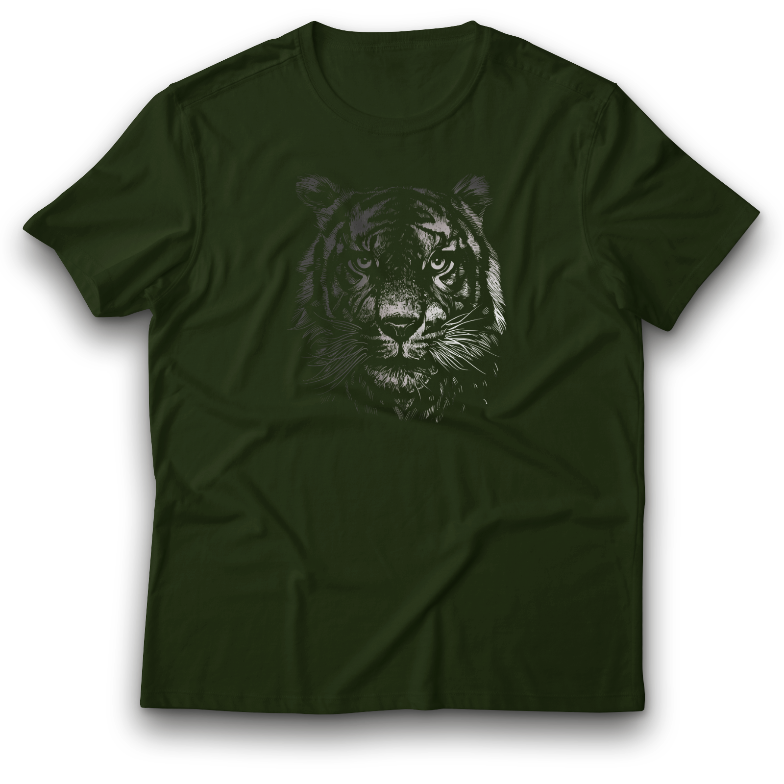 Verleihe deinem Look die Kraft und Eleganz des Dschungels mit unserem "Tiger Face"-T-Shirt! Das imposante Tiger-Motiv auf der Brust setzt ein starkes Statement und spiegelt den wilden Charakter dieser majestätischen Raubkatze wider. Ob in tiefem Schwarz oder dunkelgrünem Ton, dieses Shirt lässt dich die Stärke und Ausstrahlung des Tigers mit jedem Schritt tragen. Hergestellt aus hochwertiger Baumwolle, bietet es sowohl Komfort als auch Langlebigkeit - ideal für tägliche Abenteuer und als Teil deiner wilden Garderobe.