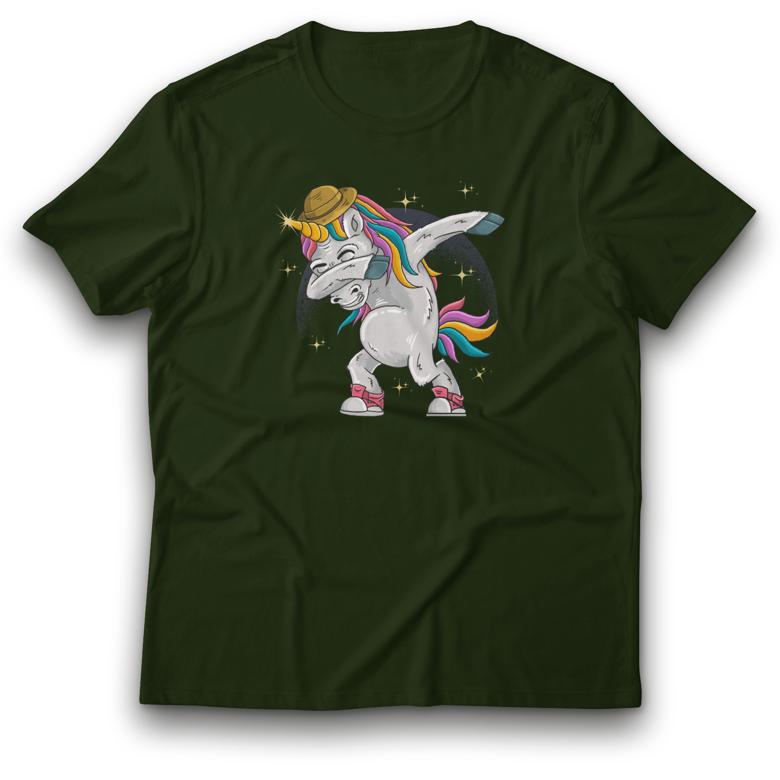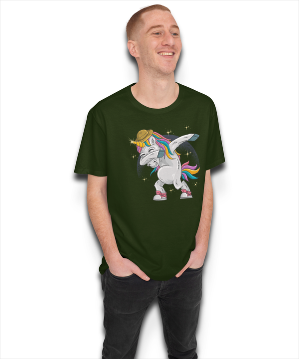 Mit unseren „Tanzende Einhorn“-T-Shirts bringst du Farbe und Spaß in deine Garderobe! Das einhornartige Design mit coolen Sneakers und Hut lässt dich in jeder Party oder im Alltag glänzen. Für alle Einhorn-Fans und kreative Köpfe, die mit Humor und Stil glänzen wollen. In verschiedenen Farben erhältlich - Schwarz, Weiß, Rot, Blau und Dunkelgrün - finde dein perfektes Shirt für jeden Anlass!