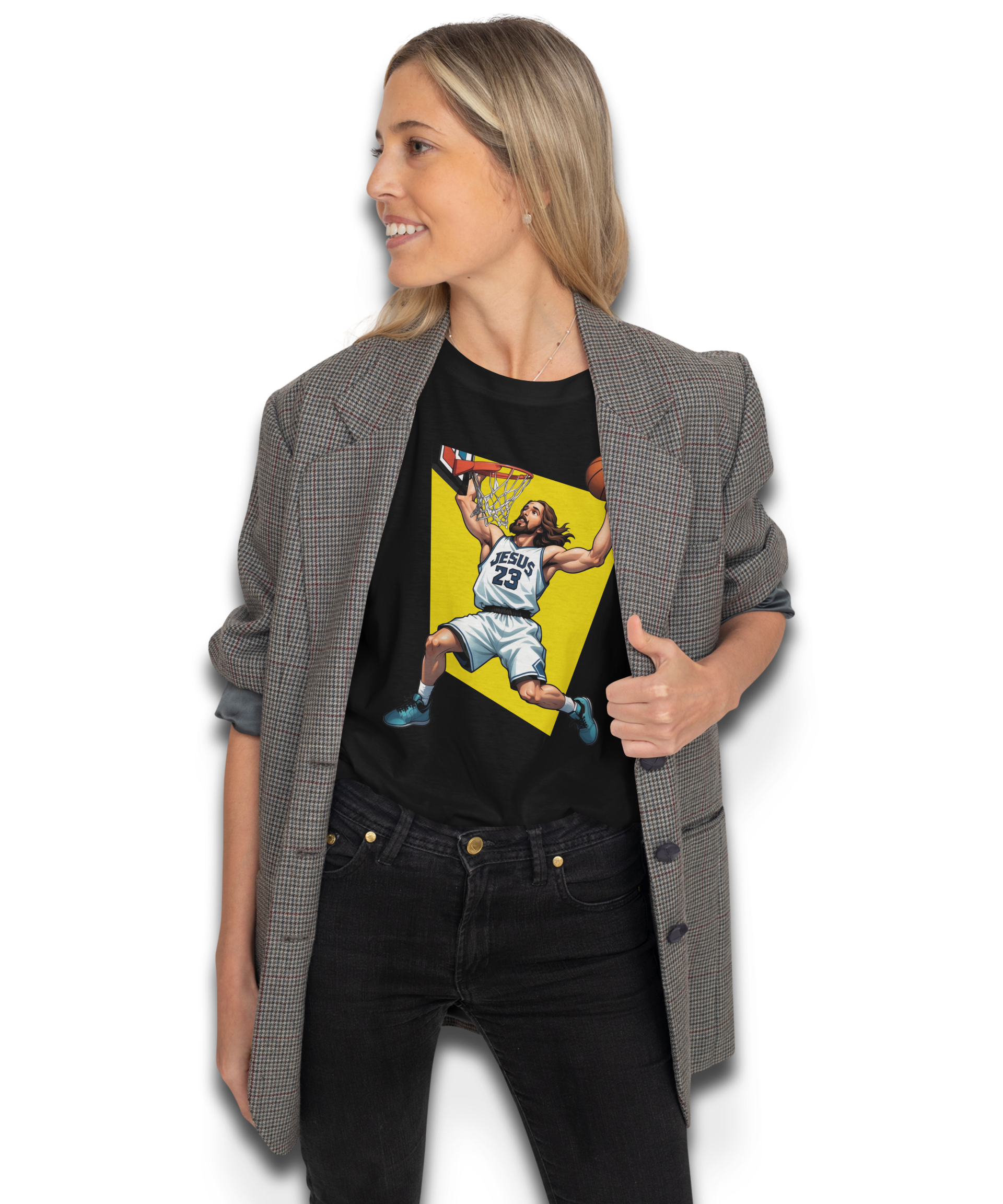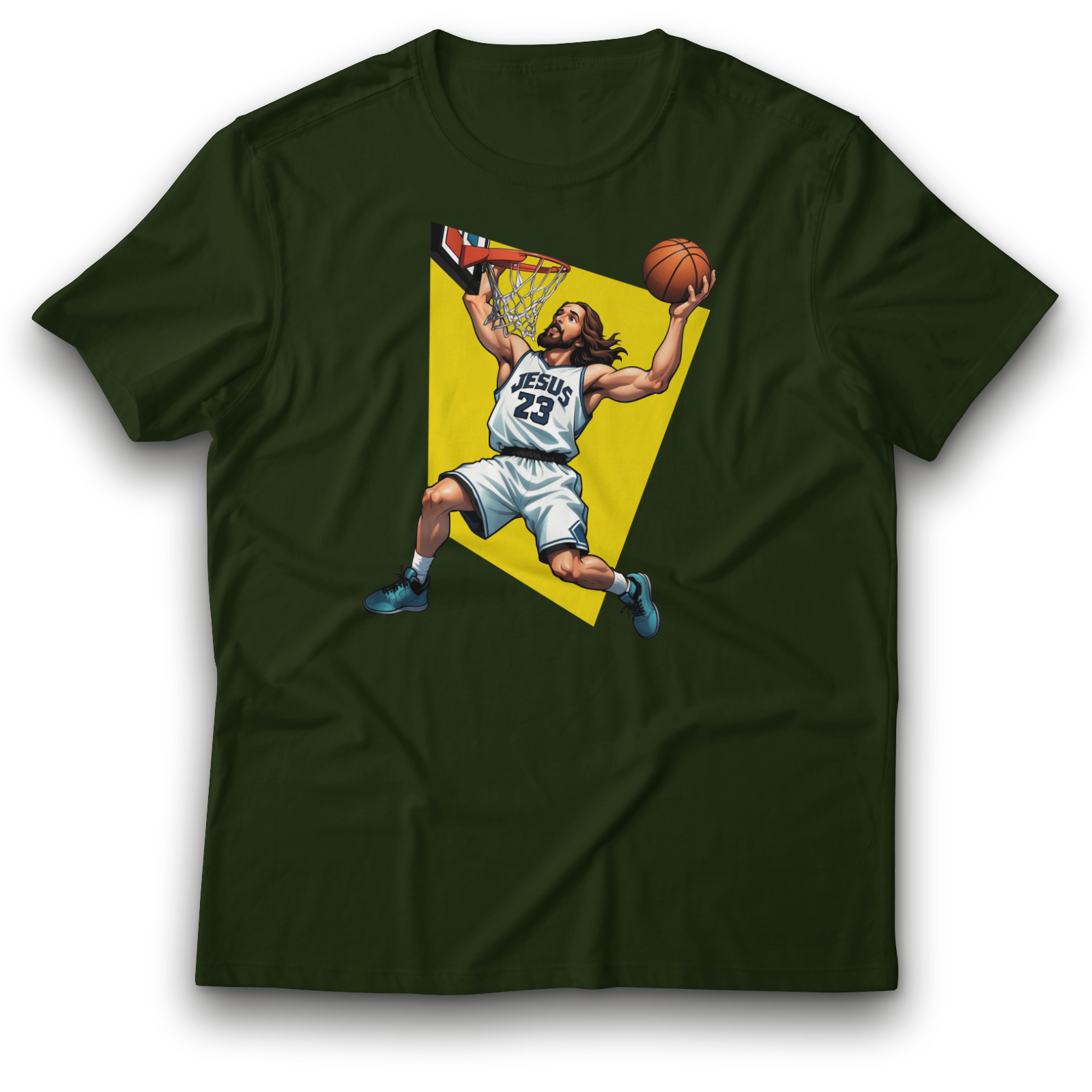 Entdecke unsere einzigartigen Basketball-T-Shirts, die den perfekten Mix aus Sport und Humor bieten! Unsere "JESUS 23" Designs sind nicht nur cool, sondern auch ein echtes Statement auf dem Spielfeld oder im Alltag. Mit einer auffälligen Illustration und dem ikonischen Basketball-Dunk-Stil fangen diese Shirts den Vibe der modernen Streetwear ein. Ideal für Basketball-Fans und alle, die ihren Style mit einem Lächeln tragen möchten.