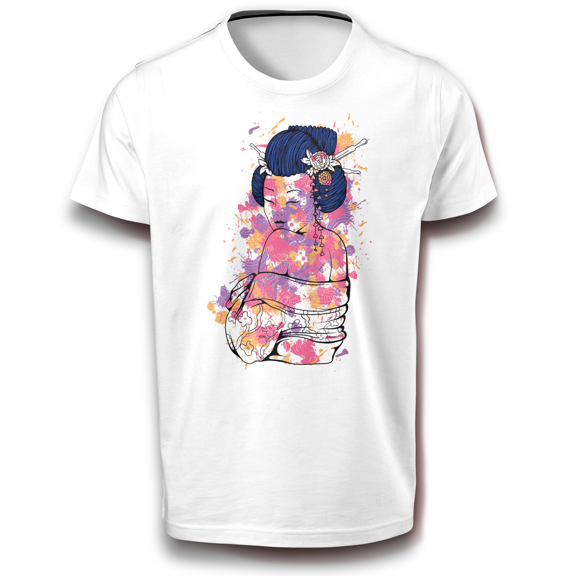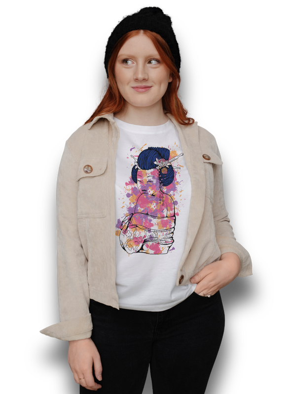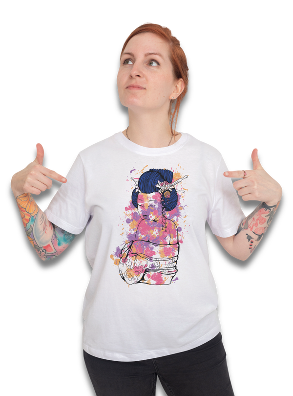 Kunstvolles Geisha T-Shirt weiß - Japan Kunst Mode