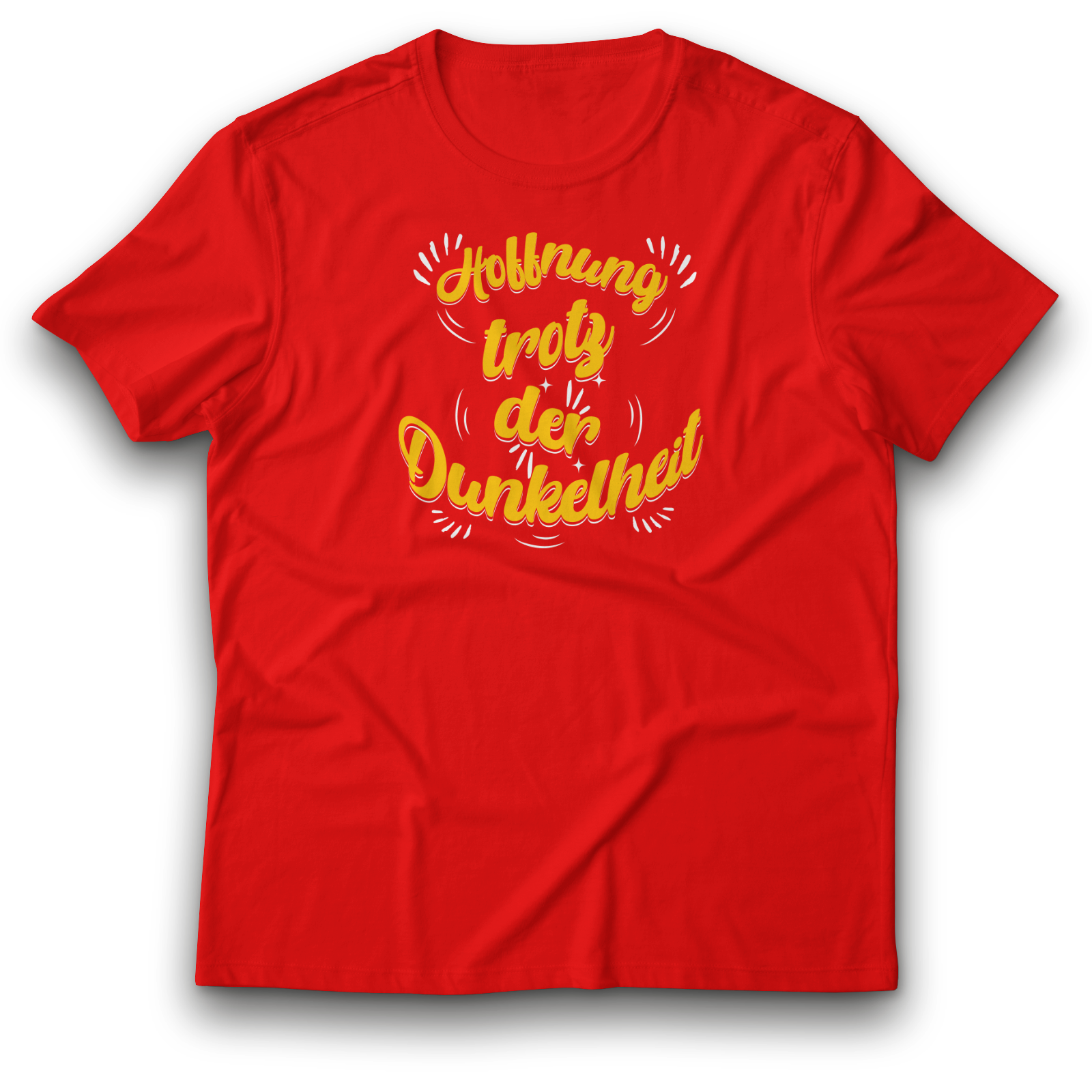 Entdecke unsere exklusive Kollektion inspirierender T-Shirts mit deutschen Botschaften! Unsere "Hoffnung trotz der Dunkelheit" Serie verbindet stilvolles Design mit kraftvollen Worten, die Mut machen und Hoffnung spenden.