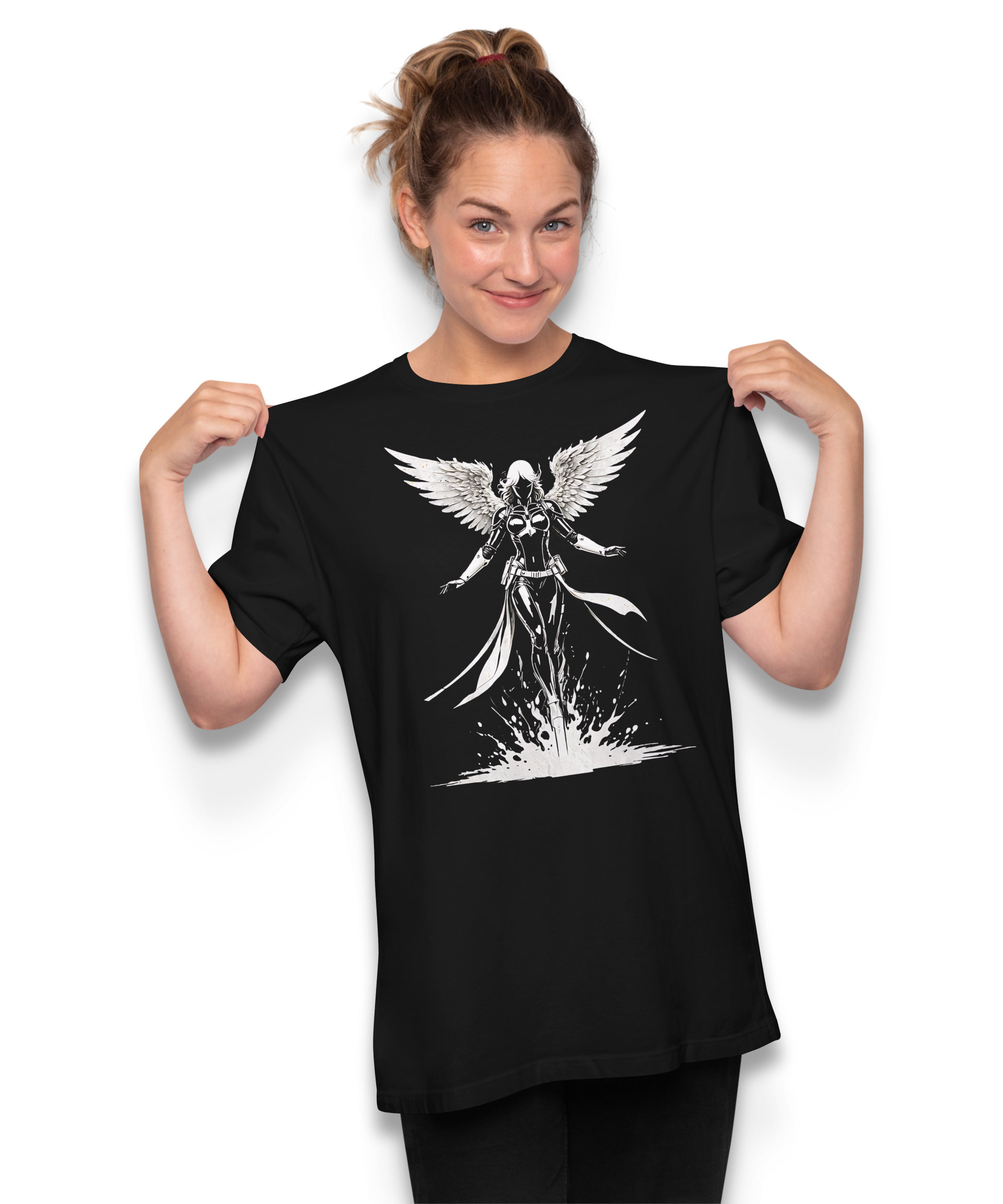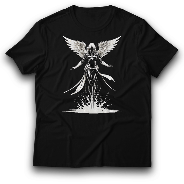 Angelic Ascension T-Shirt schwarz - Engelsmotiv mit kraftvollen Flügeln