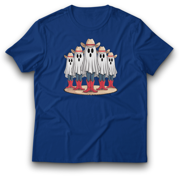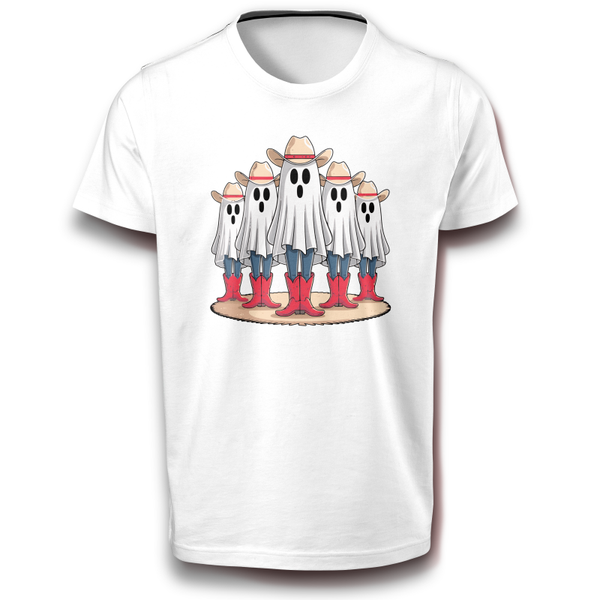 Das „Ghost Cowboys“-T-Shirt kombiniert die gruselige Welt der Geister mit einem klassischen Western-Look. Fünf Geister in Cowboyhüten und roten Stiefeln bilden eine humorvolle Gruppe, die perfekt für Halloween oder für alle, die eine witzige und unkonventionelle Interpretation von Geistern lieben, geeignet ist. Mit diesem Shirt zeigst du, dass du Humor und Stil miteinander verbindest - ideal für die Gruselsaison oder für Fans des Ungewöhnlichen.