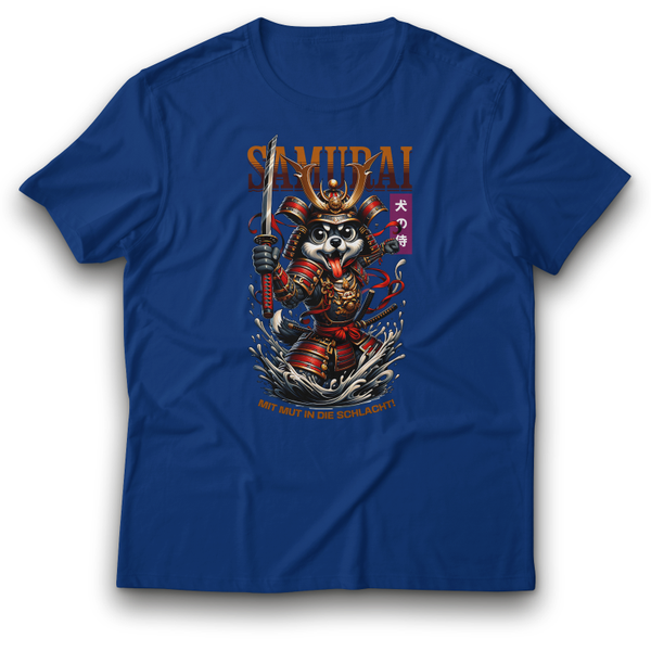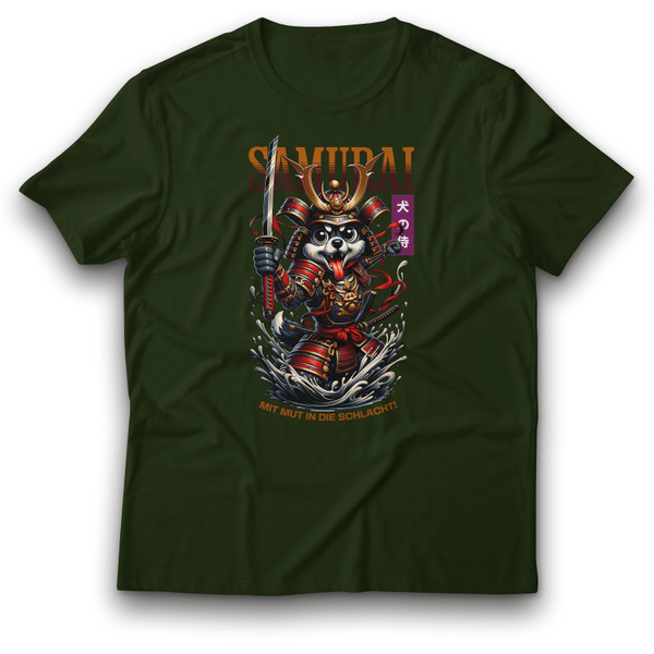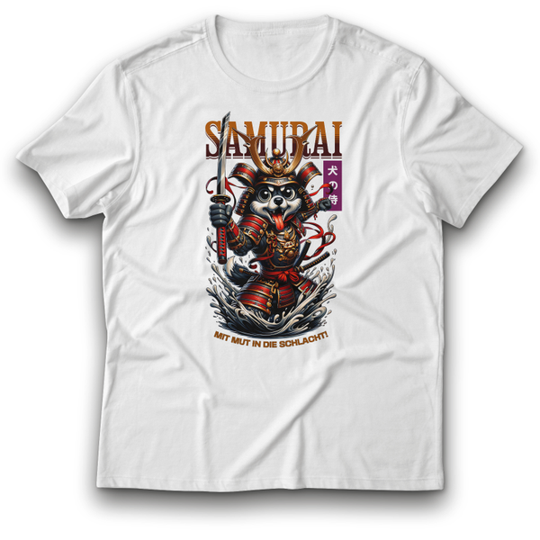 Samurai Krieger Hund T-Shirt „MIT MUT IN DIE SCHLACHT!“ episches Design