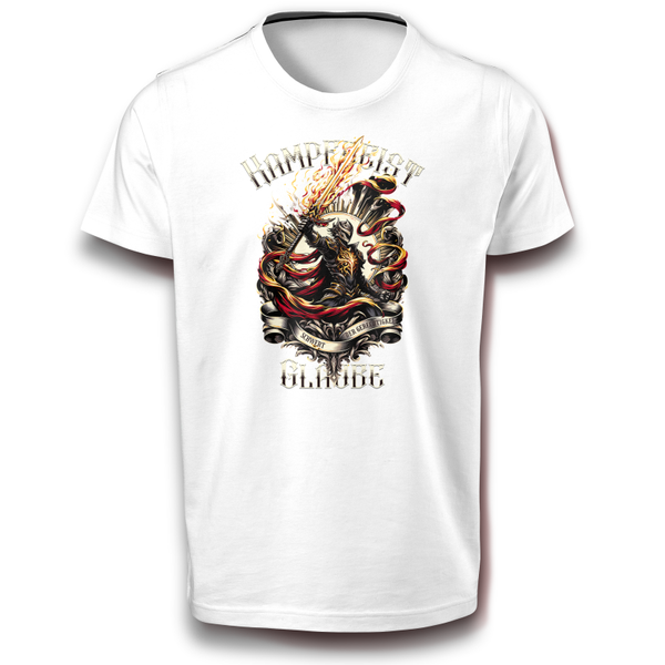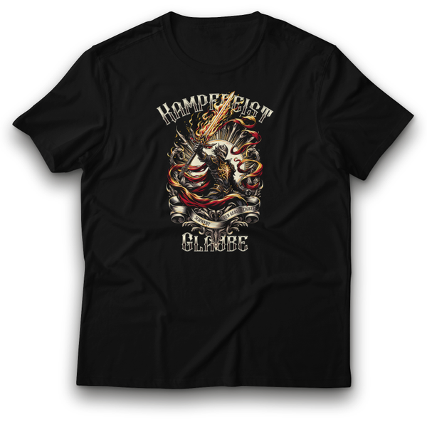 Dieses beeindruckende T-Shirt mit dem kraftvollen Kampfgeist Glaube - Design bringt Energie und Stil in deinen Kleiderschrank. Die eindrucksvolle Darstellung eines Kriegers mit brennendem Schwert in einer dynamischen Pose sorgt für Aufmerksamkeit. Die mystischen Elemente und das kraftvolle Design machen dieses Shirt zu einem echten Hingucker, das perfekt für starke Persönlichkeiten und Krieger im Herzen ist. Egal, ob du es zu einem Rockkonzert, in deiner Freizeit oder für den Alltag trägst - dieses Shirt wird dir immer die nötige Kraft und den coolen Look verleihen.