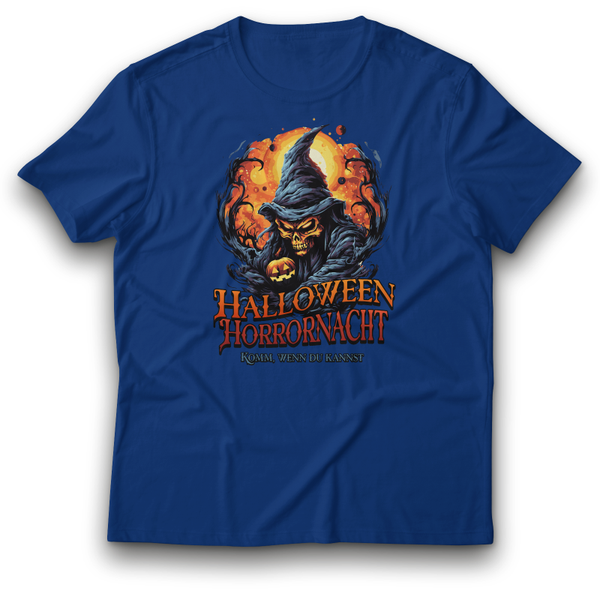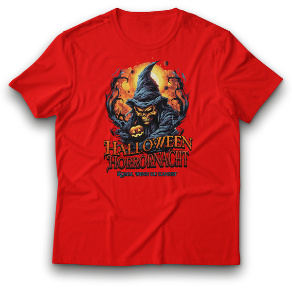 Das Halloween Horrornacht T-Shirt ist das perfekte Kleidungsstück für alle, die Halloween in vollen Zügen genießen und dabei einen gruseligen, aber stilvollen Look tragen möchten. Mit einem Skelett-Zauberer, der von einem leuchtenden Kürbis begleitet wird, spiegelt das Design die düstere und aufregende Atmosphäre der Halloween-Nacht wider. Das kräftige orange-gelbe Glühen und die detailreiche Illustration verleihen diesem T-Shirt einen einzigartigen Charme, der sowohl Horror- als auch Halloween-Fans anspricht. Zeig dich als echter Grusel-Liebhaber mit diesem einzigartigen Design!