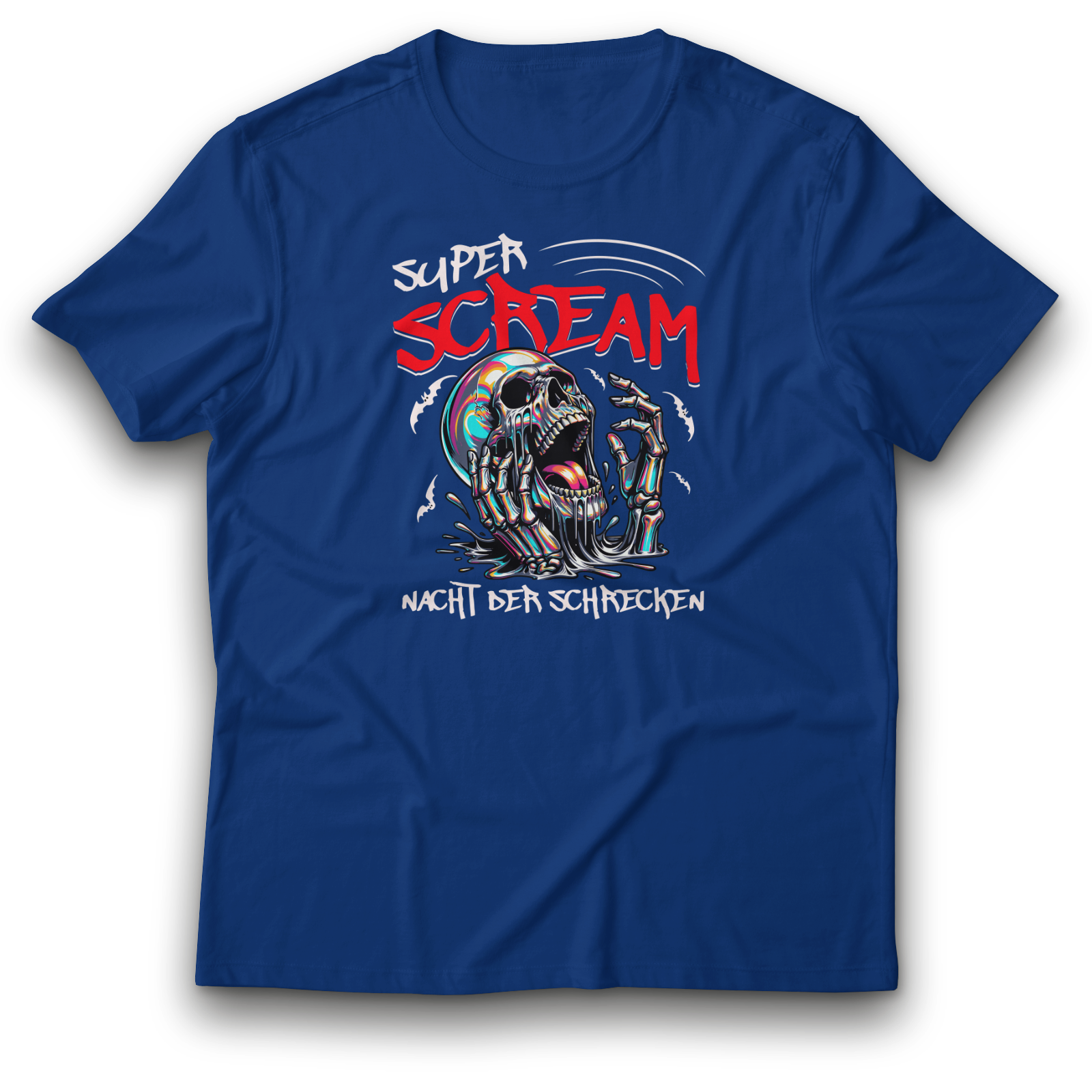 Super Scream Nacht der Schrecken T-Shirt Sklett-Design Halloween Shirt