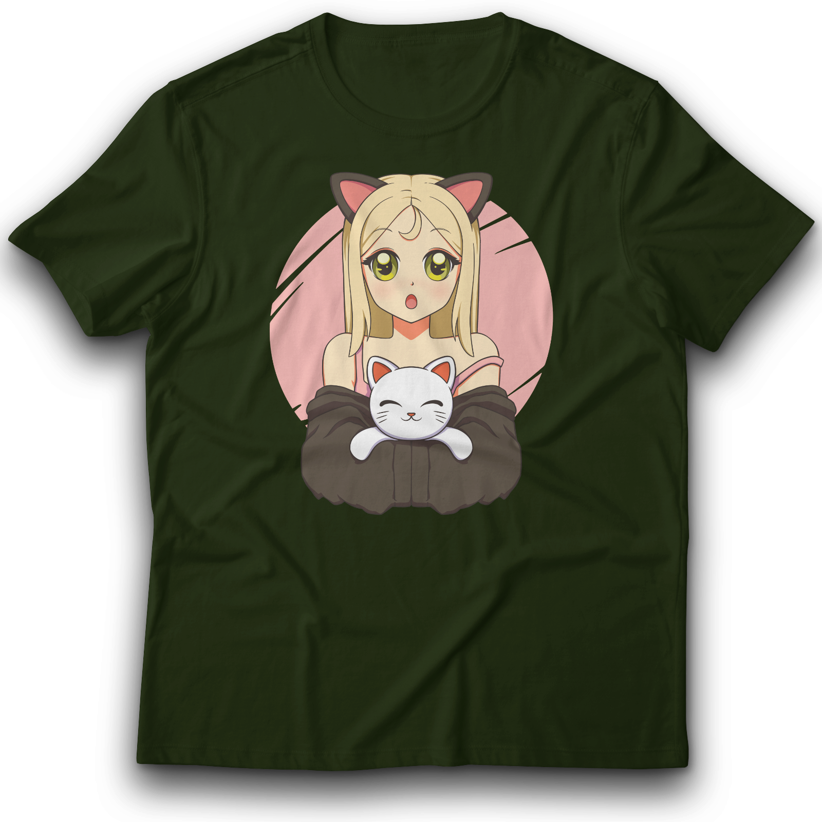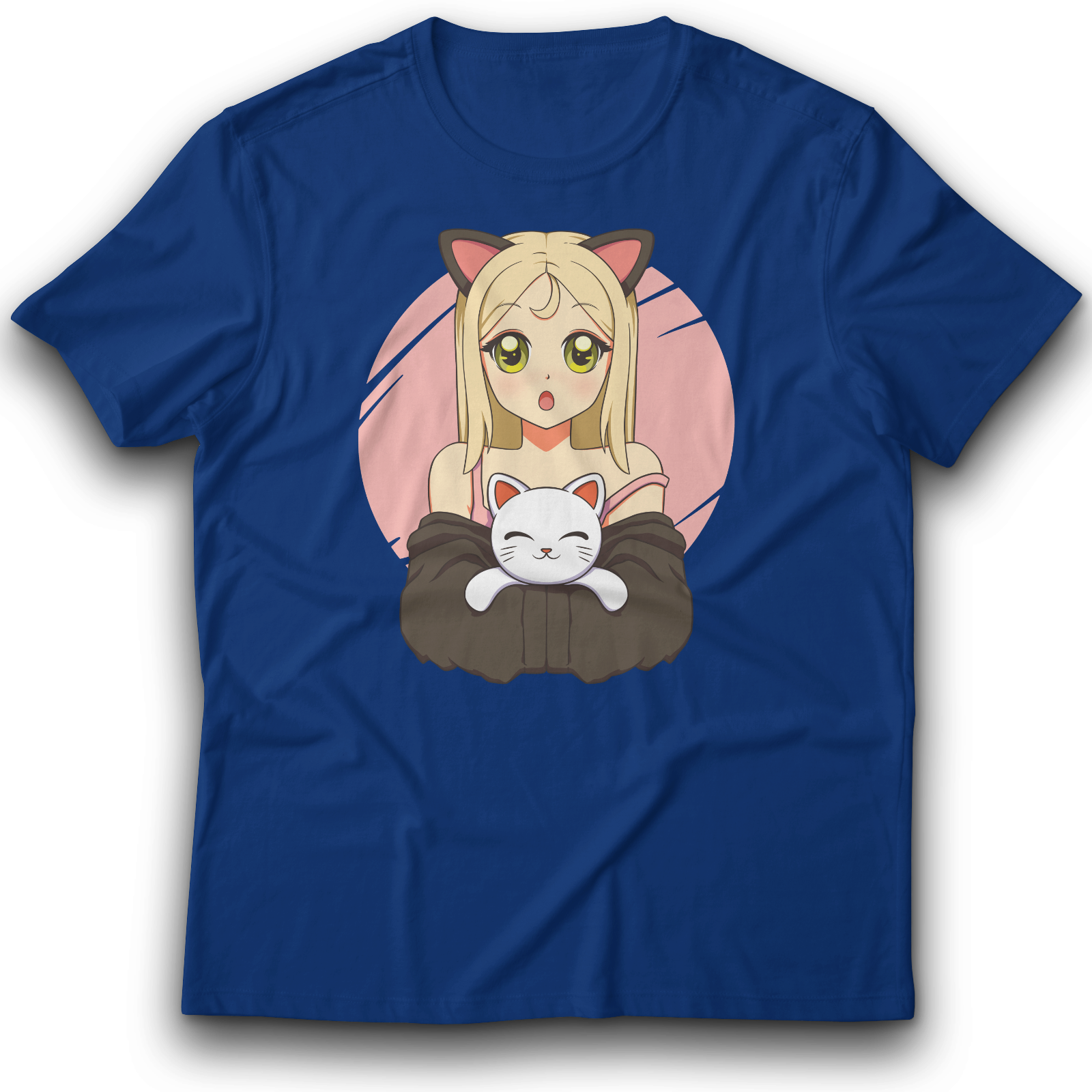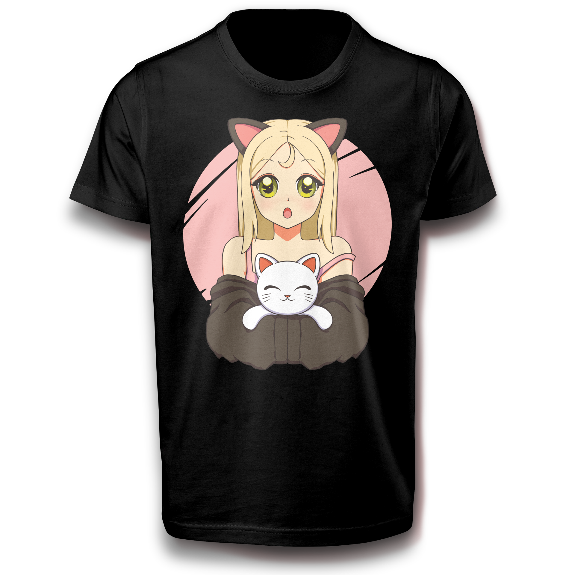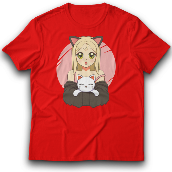 Anime Mädchen mit Katze T-Shirt 122-3XL 100% Baumwolle Japan Spaß Lustig