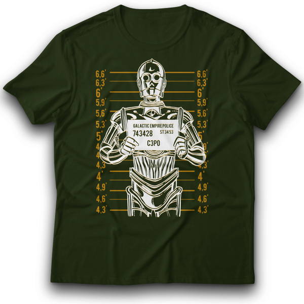 Parodie 3PO Mug shot c-3po, robot Fun B&C Baumwolle T-Shirt 122 - 3XL Geschenk Film, Lustig, Mond, Retro, Spaß, Sterne, Geschenk, Kampf, Krieger