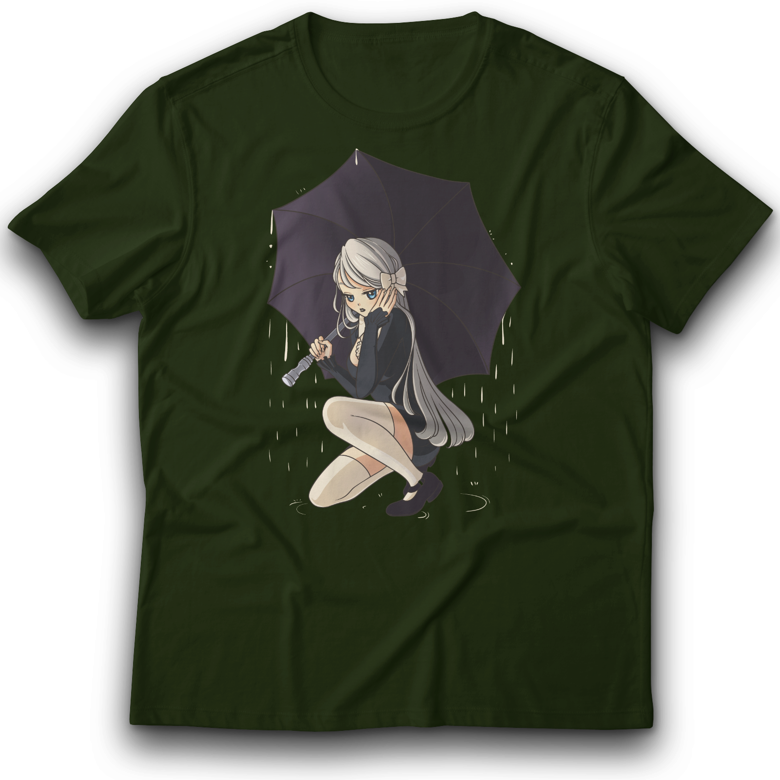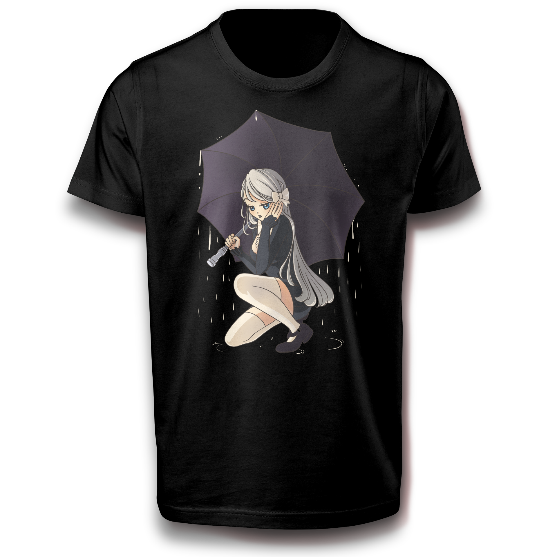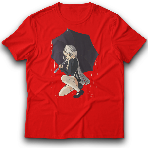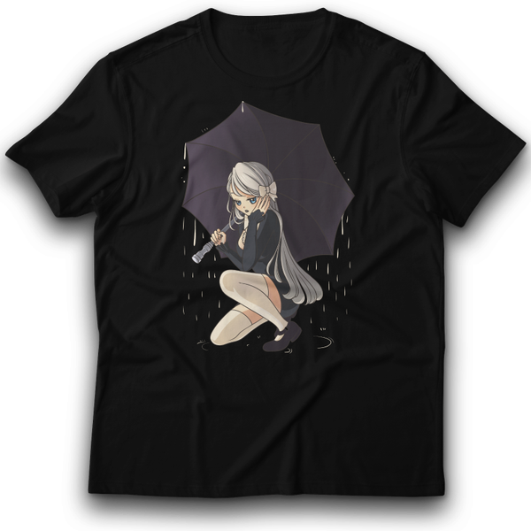 Anime Gothic Mädchen unter dem Regenschirm T-Shirt 122 - 3XL Baumwolle Japan wasser tropfen Regen