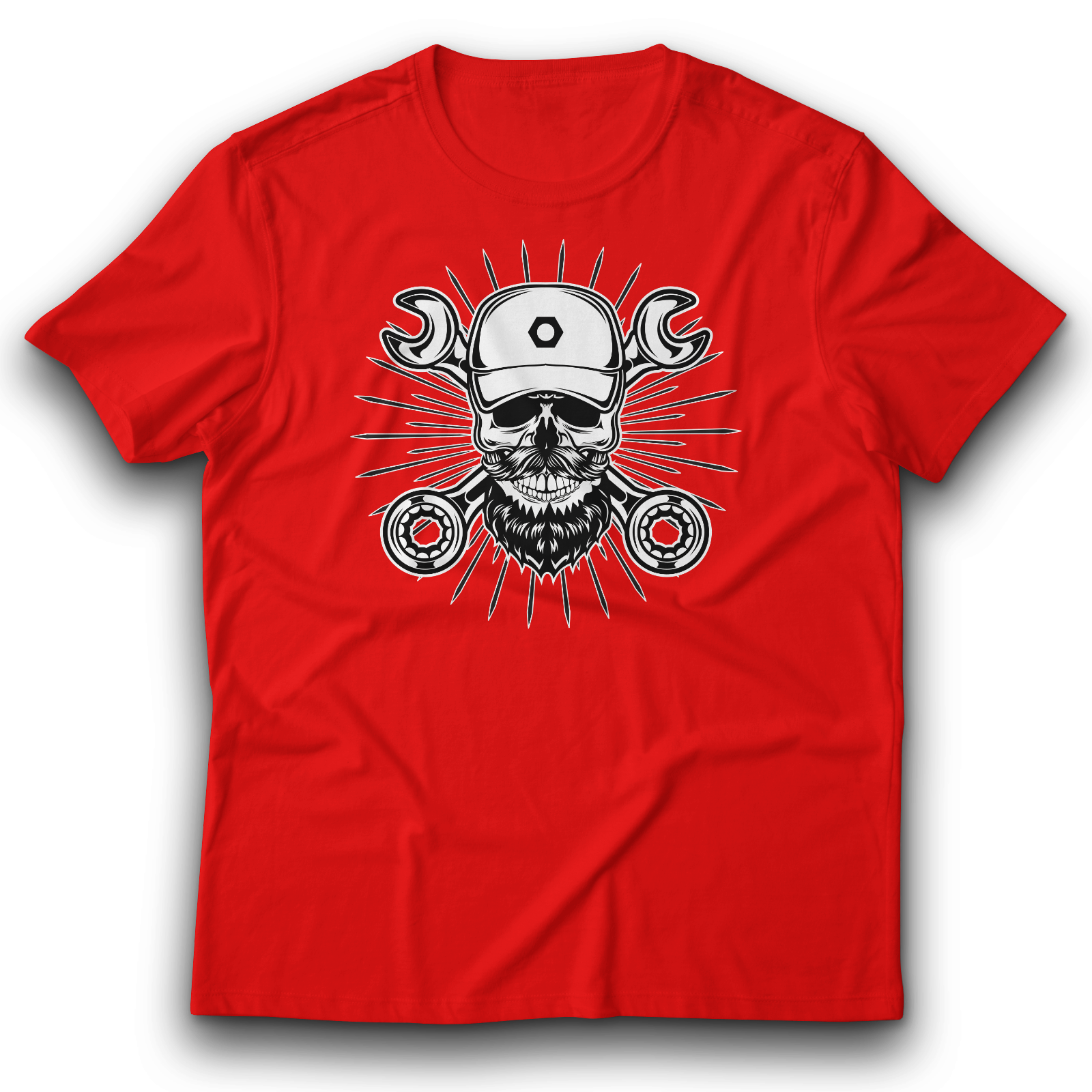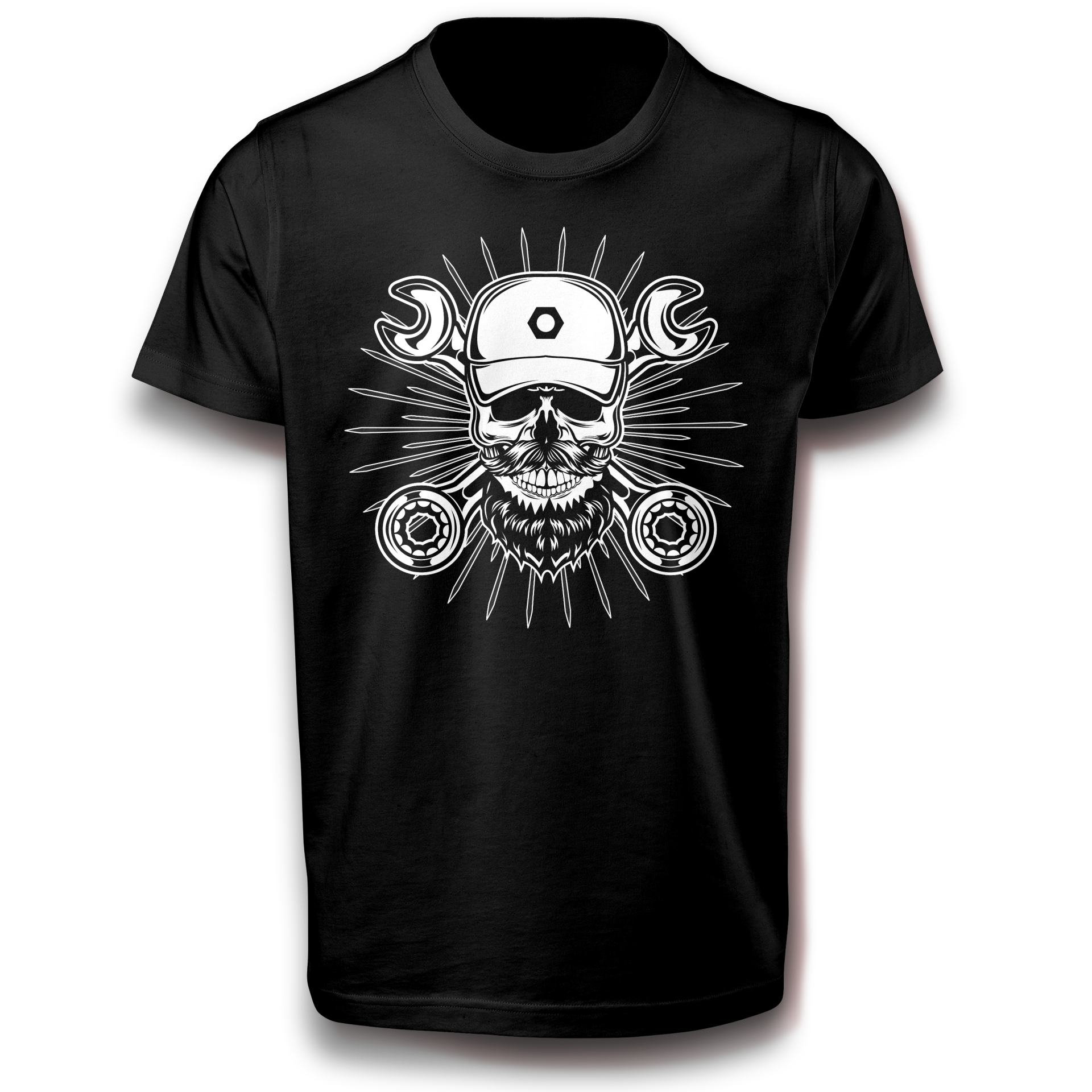 Schädel Mechaniker Kopf Gabelschlüssel Skelett T-Shirt XS - 3XL Baumwolle Handwerker, Schlosser, Schnurrbart, Werkzeug