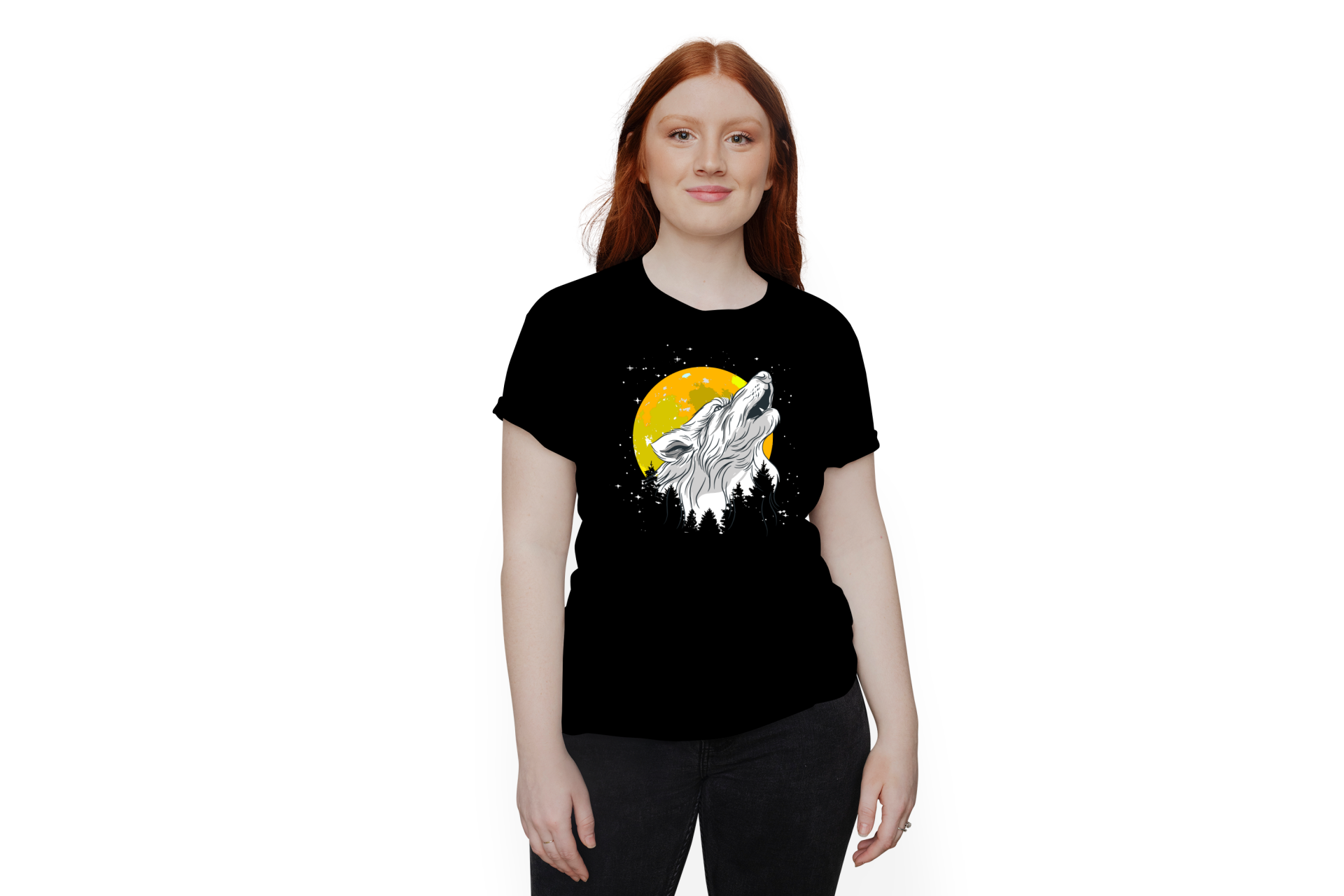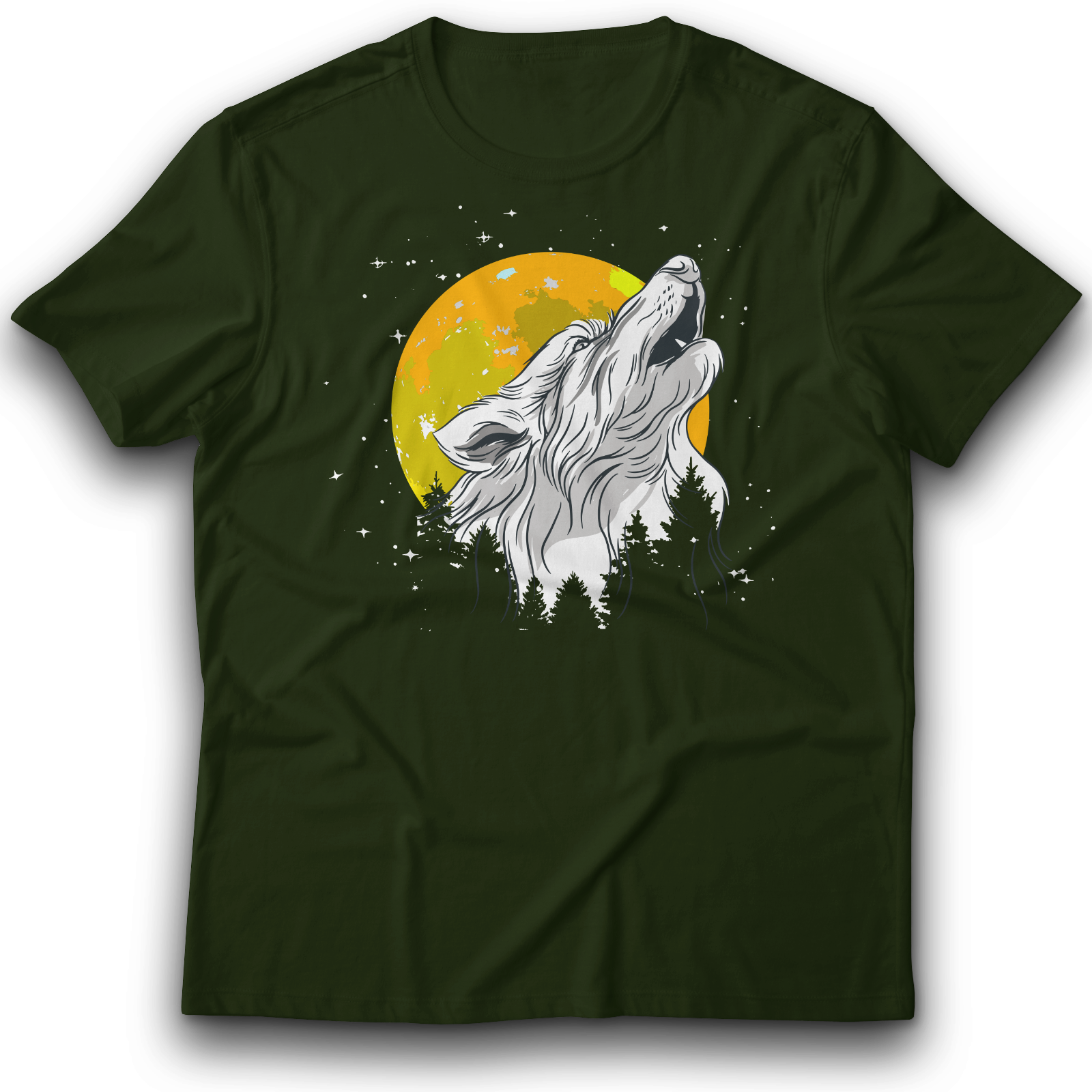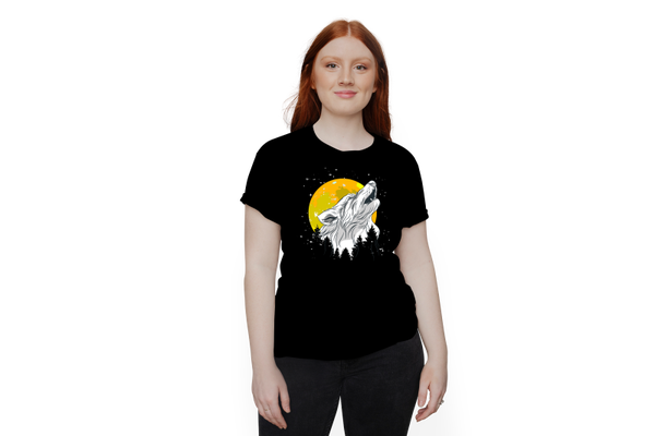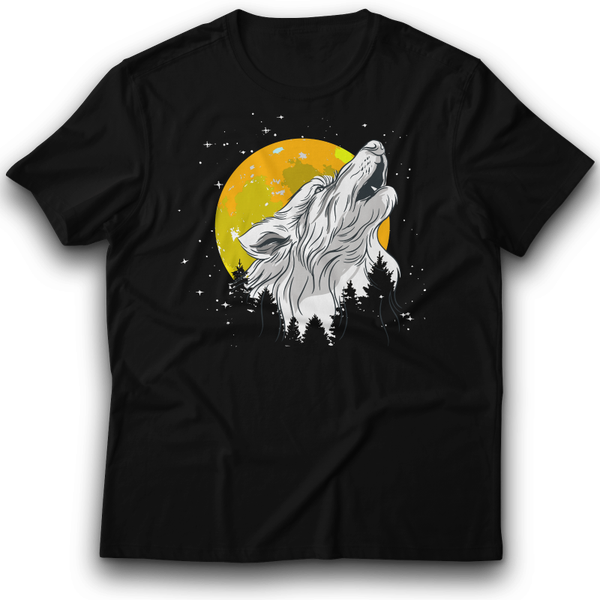 Wolf wildes Tier der im Wald heult T-Shirt 122 - 3XL Baumwolle Mond, Nacht, Natur, Retro, Vollmond